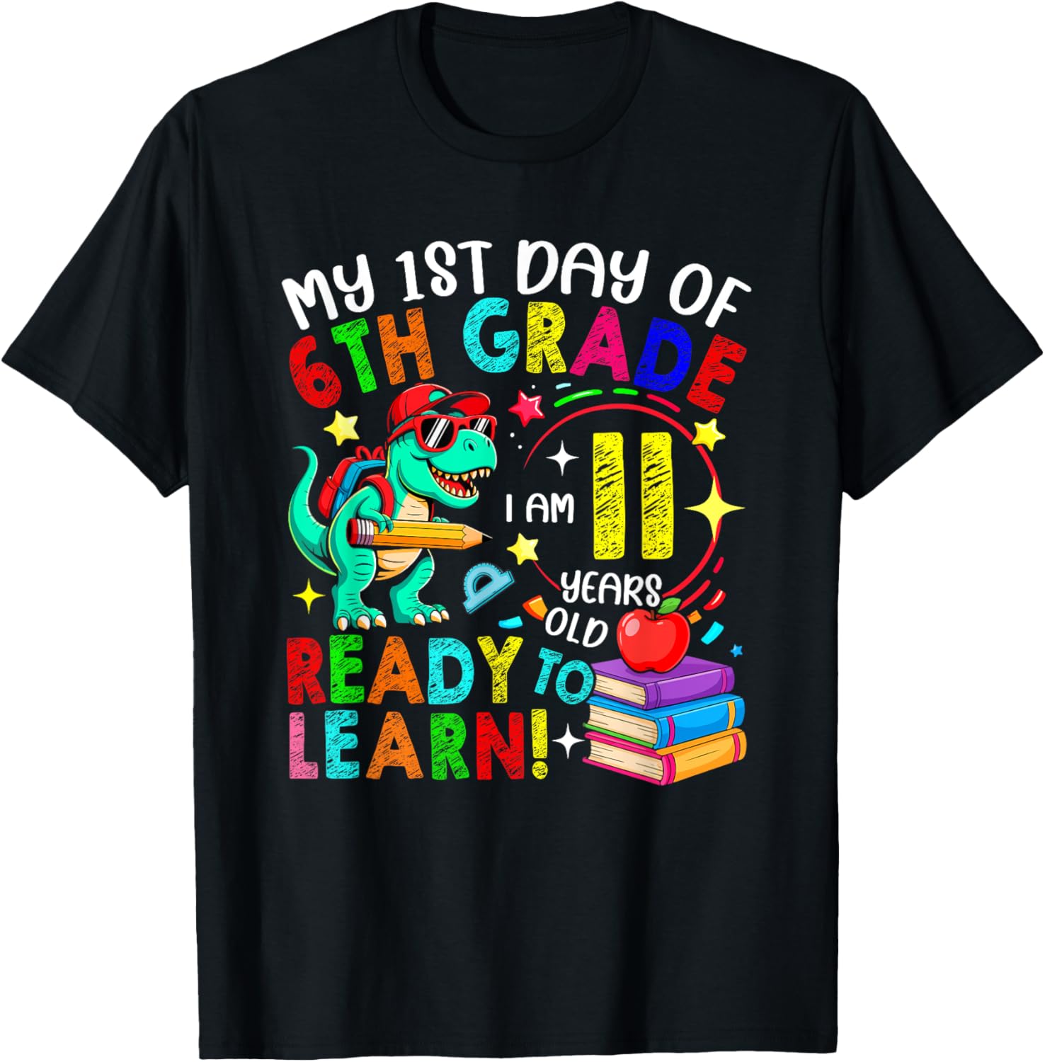 1st Day Of 6th Grade 11 Years Old Cute T-rex Back To School T-Shirt