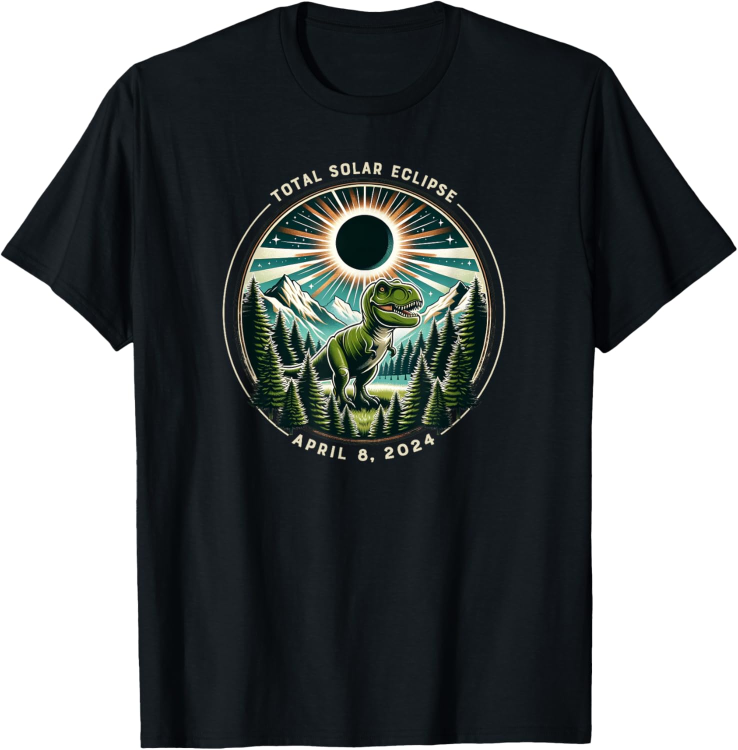 2024 Total Solar Eclipse T Rex Dinosaur With April Date T-Shirt