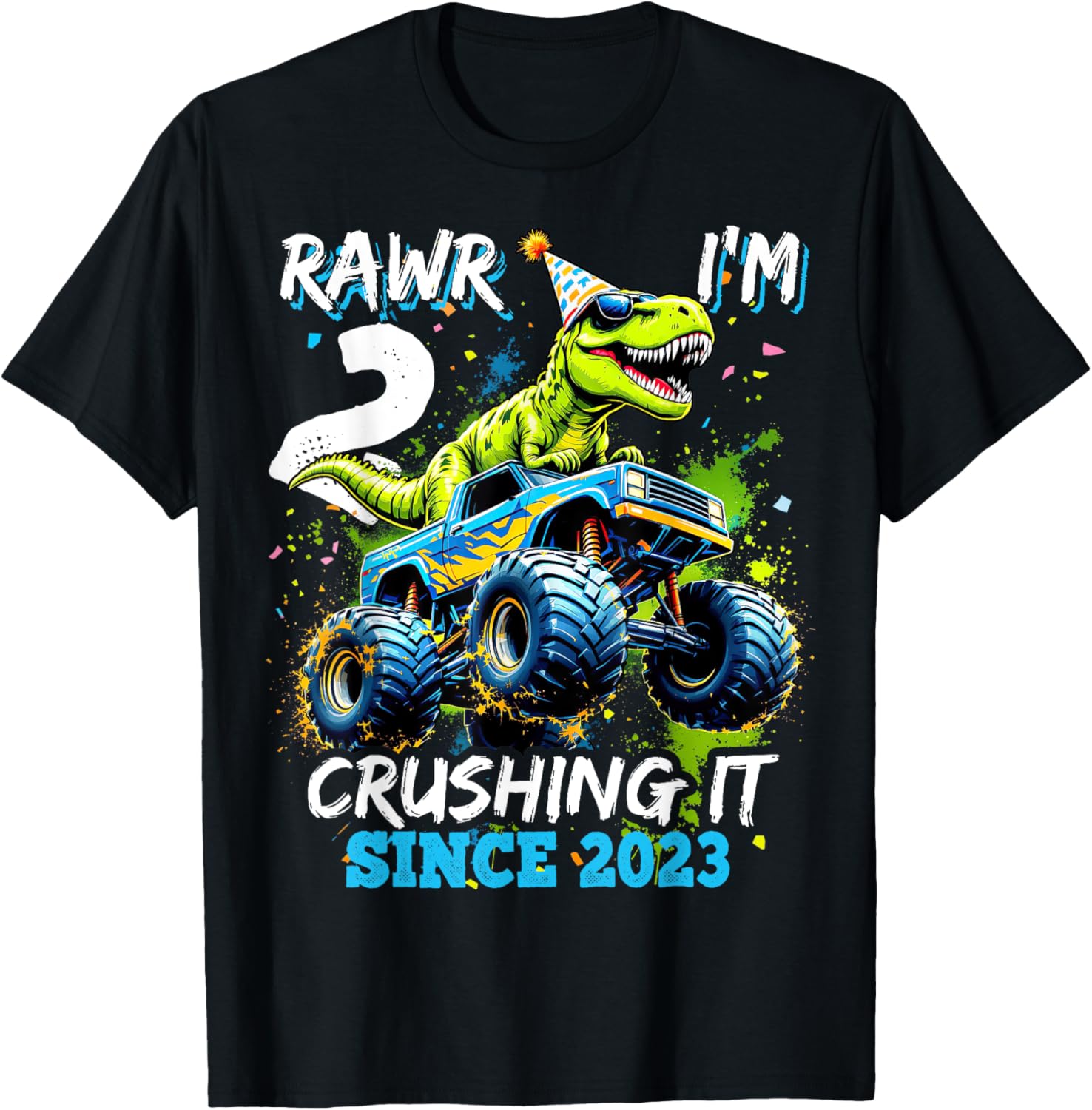 2nd Birthday Monster Truck Dinosaur Party Boys Rawr I'm 2 T-Shirt