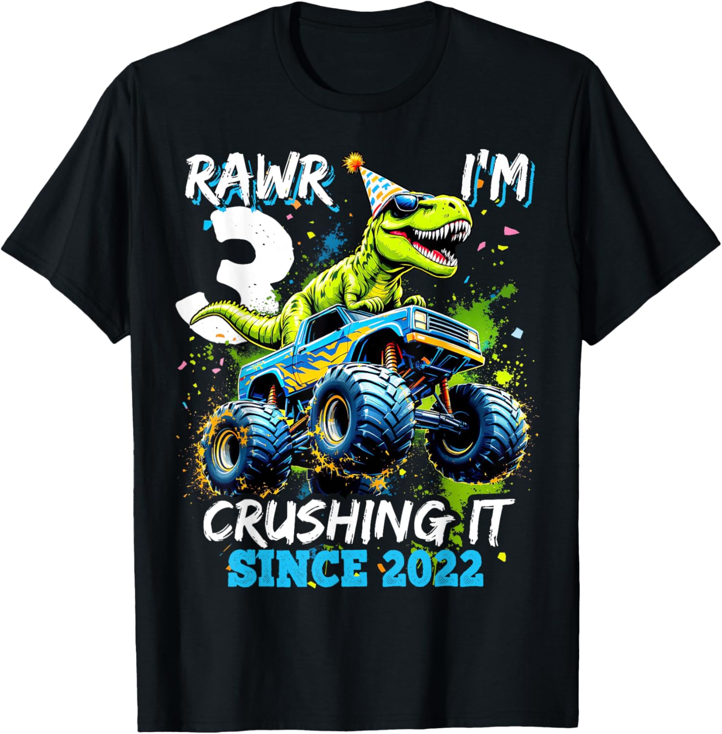 3rd Birthday Monster Truck Dinosaur Party Boys Rawr I'm 3 T-Shirt