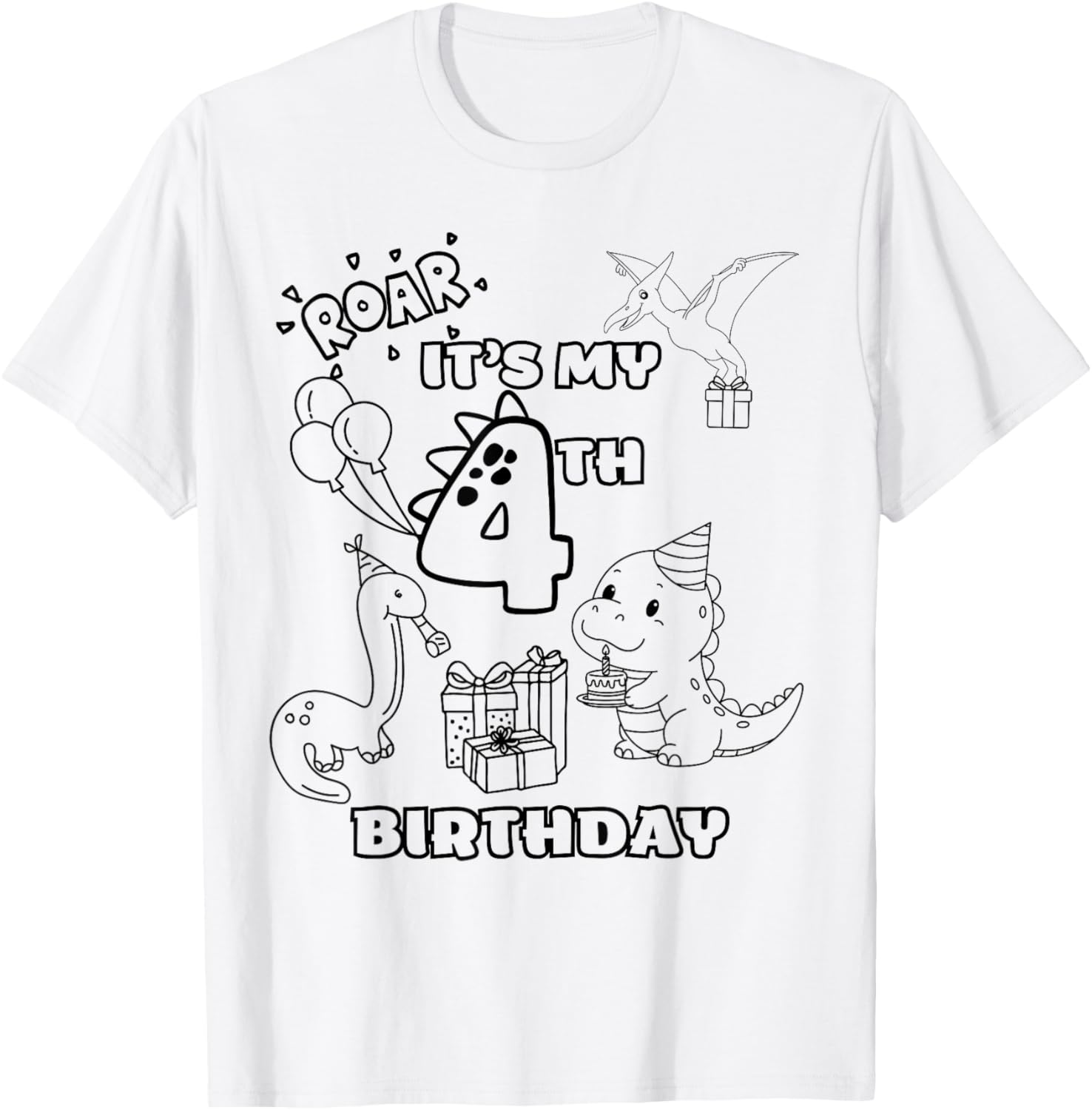 4th Birthday Boy Fabulous Dinosaur Birthday T-Shirt