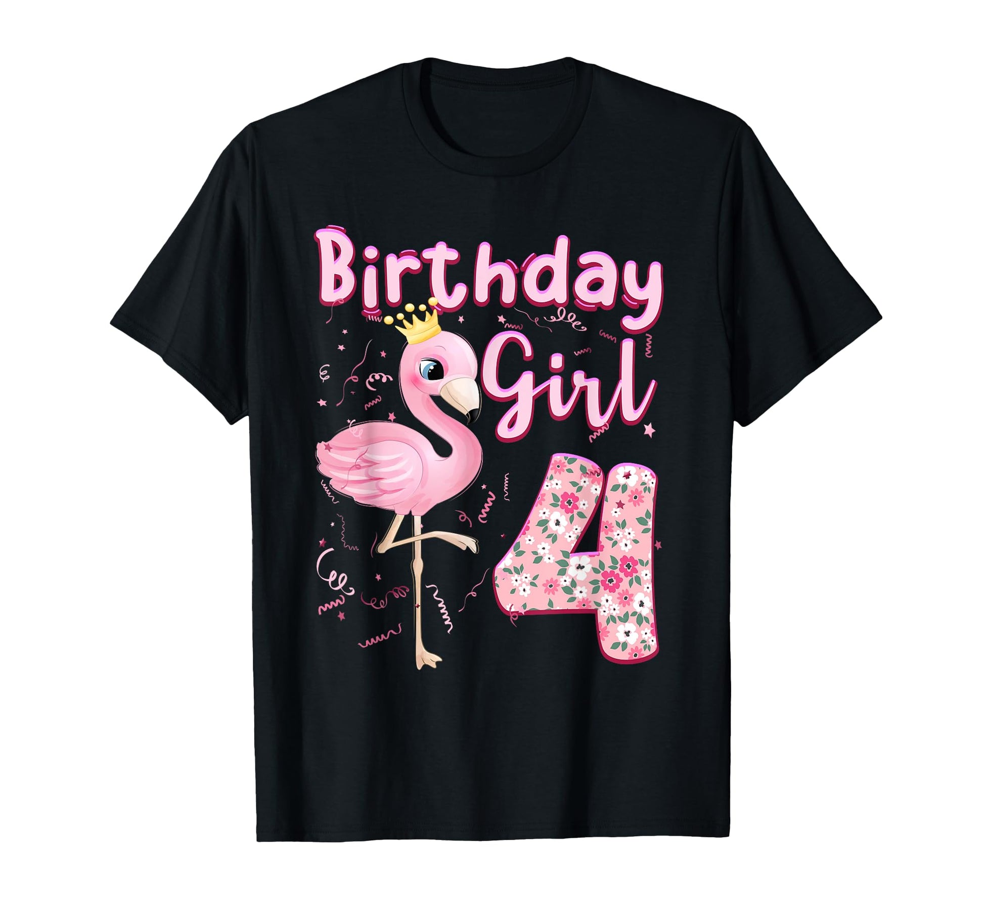 4th Birthday Girls Flamingo 4 Years Old Tropical Flamingo T-Shirt