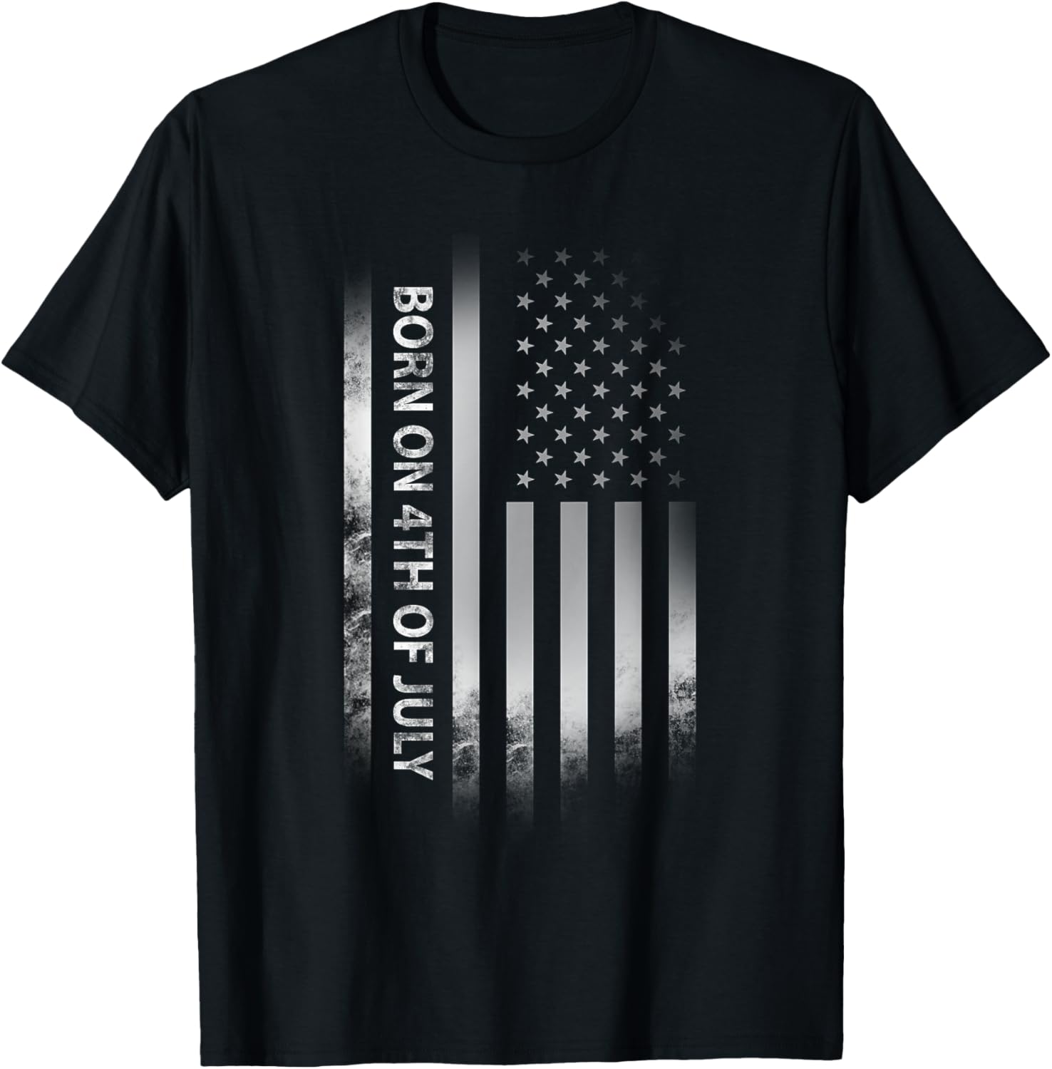 4th of July Birthday American Flag Born on the Fourth Tee T-Shirt