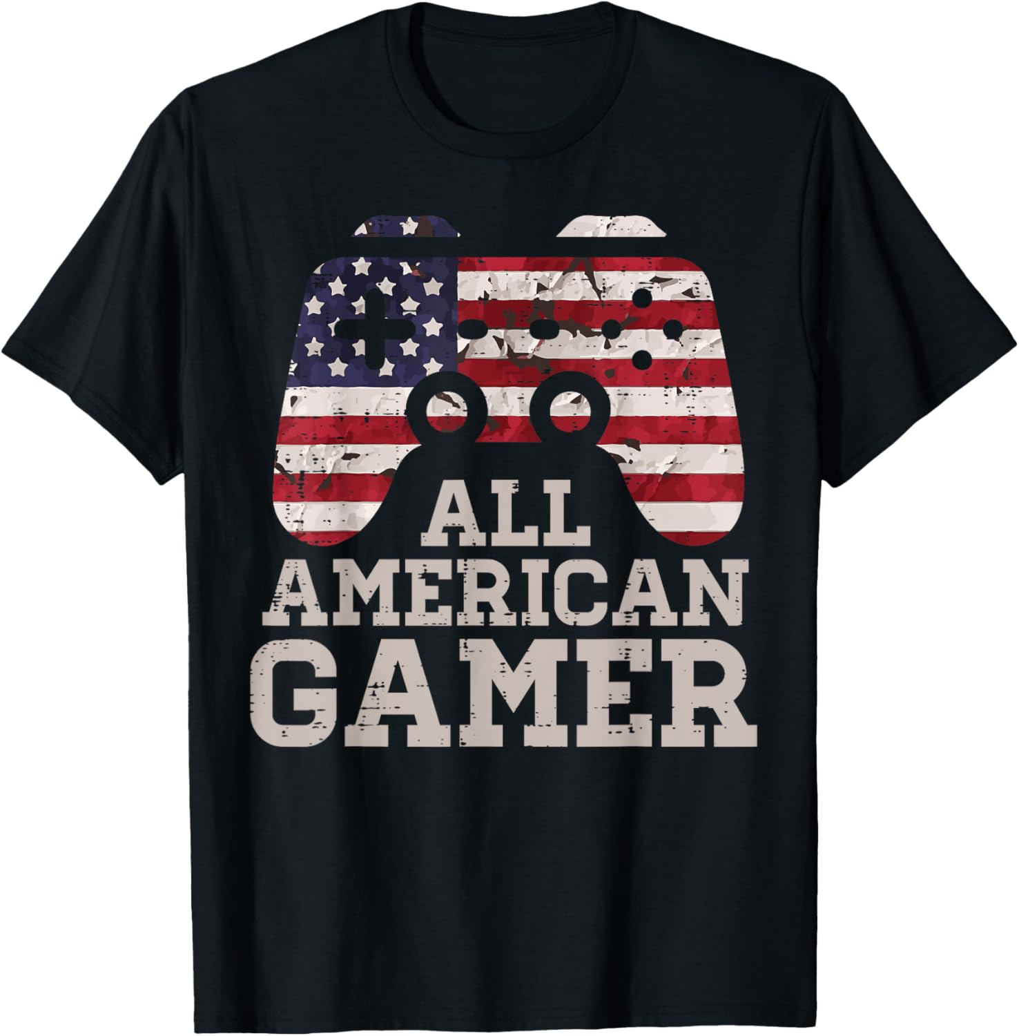 4th July All American Gamer Patriot Men Boys Kids Teen Youth T-Shirt