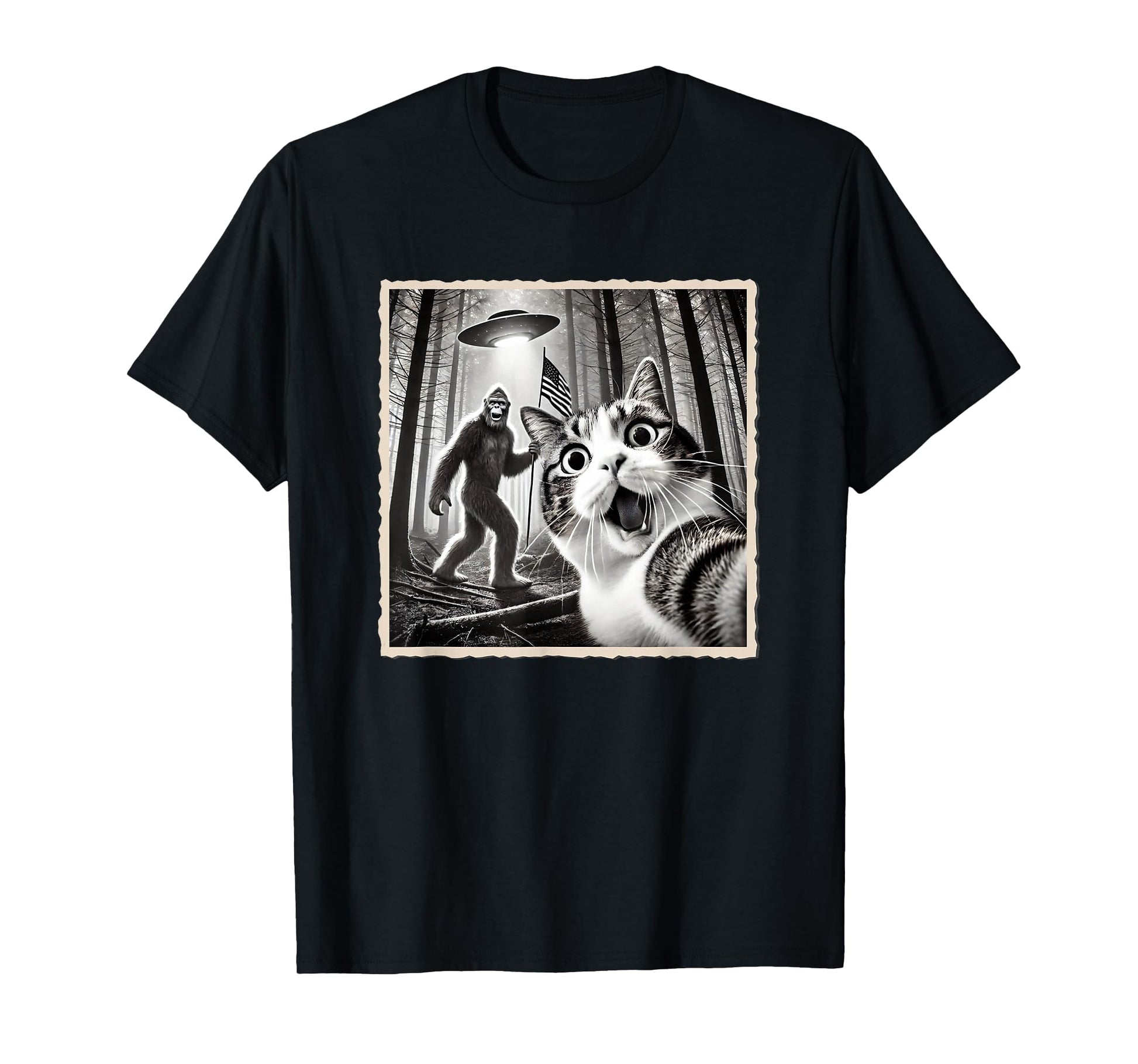 4th of July Bigfoot & Cat, Funny Patriotic, American Flag T-Shirt