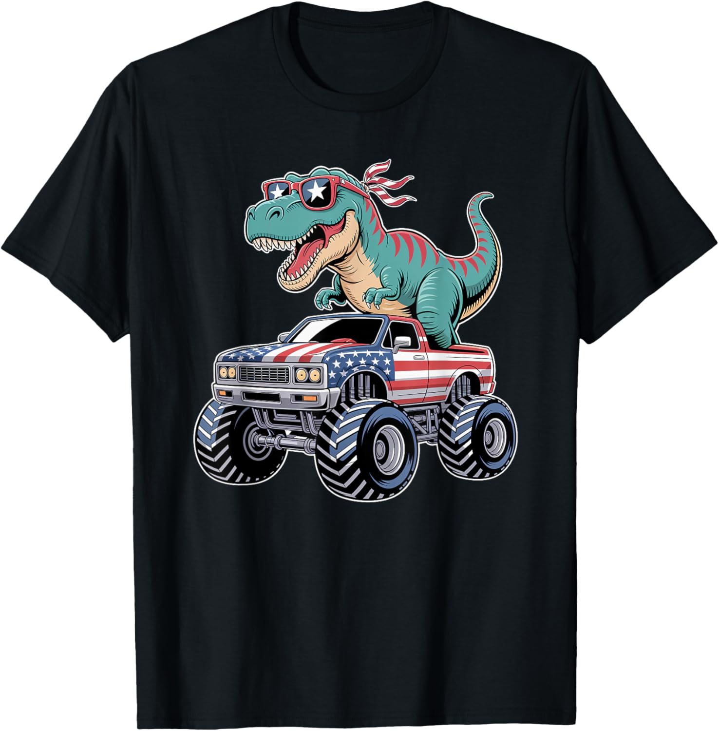 4th Of July Dino Monster Truck American Flag Dinosaur T-Rex T-Shirt