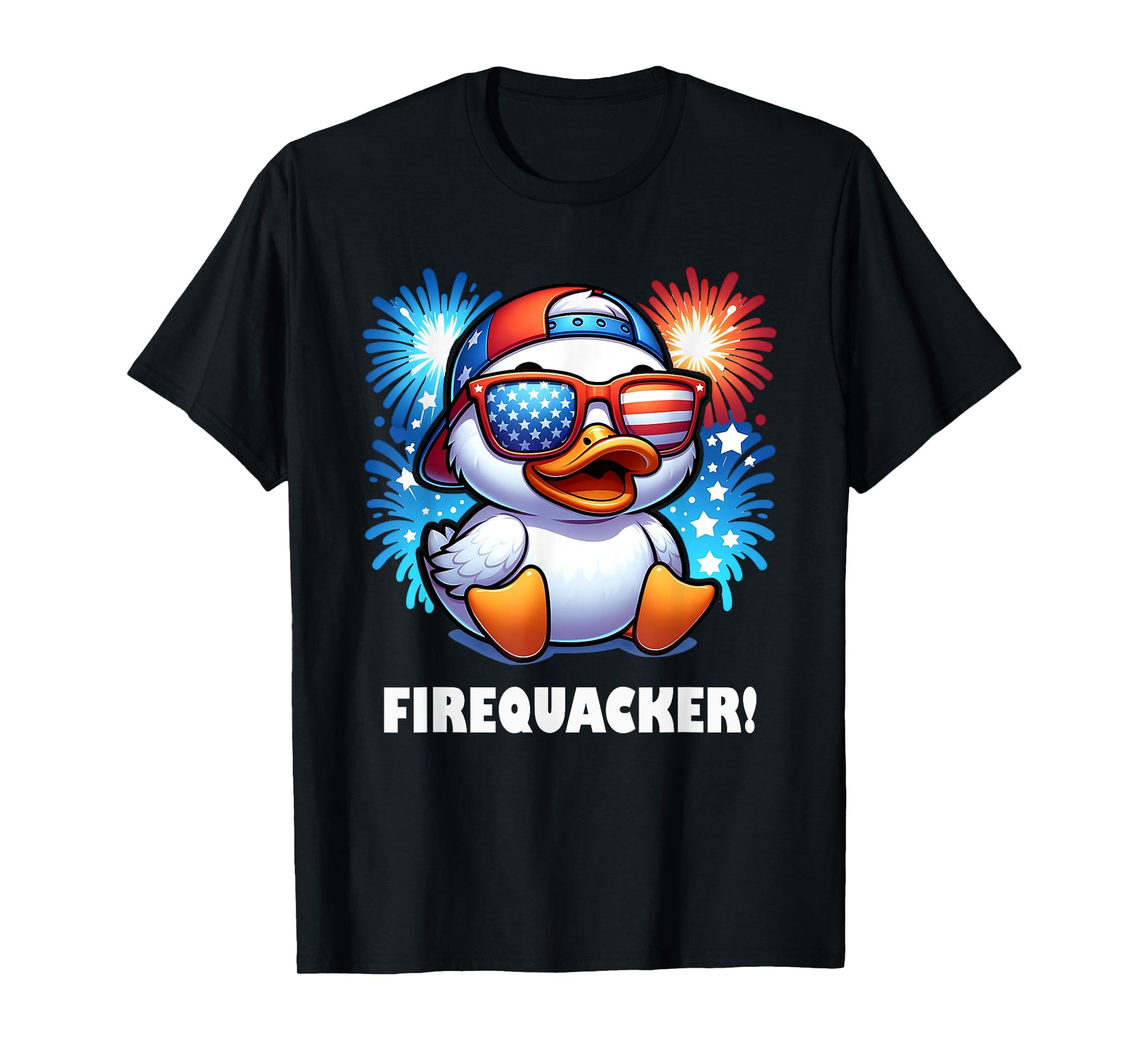 4th of July Firequacker Duck American Flag Fireworks Graphic T-Shirt