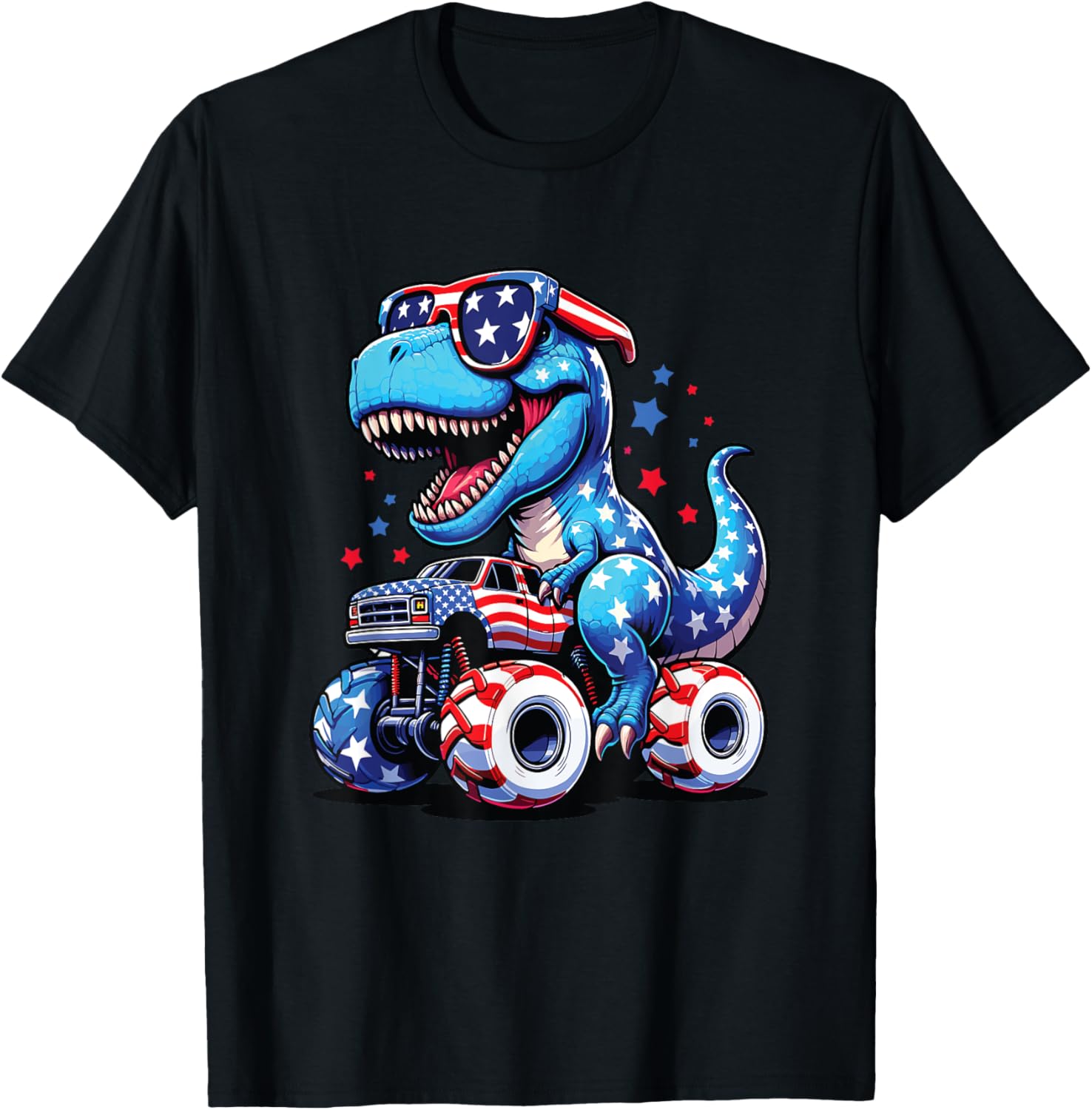 4th Of July T Rex Dino Trex Dinosaur Monster Truck Usa Flag T-Shirt