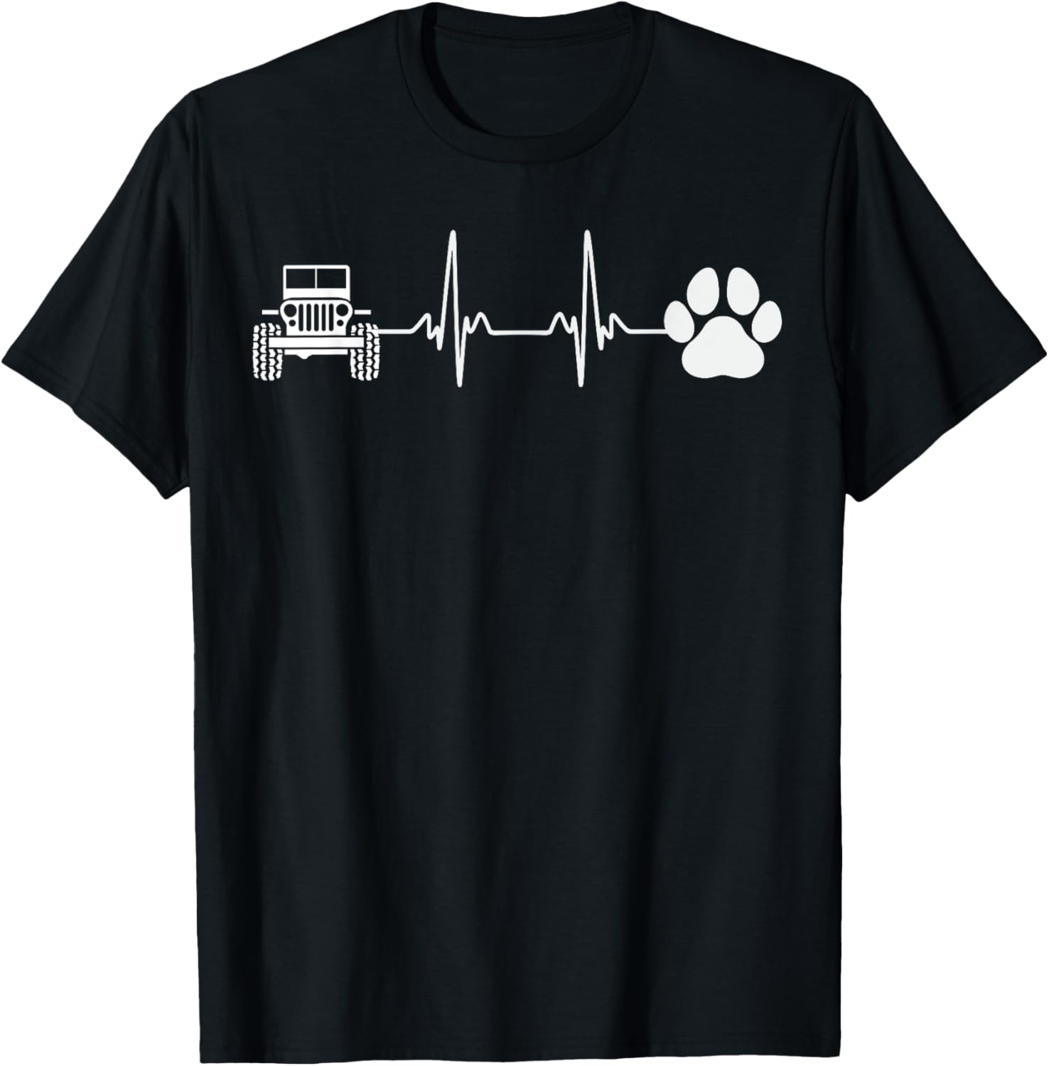 Unisex 4WD Off Road Cute Paw Heartbeat Dog Lover Cat Owner Offroad T-Shirt Black Small Classic Fit Crew Collar Short Sleeve
