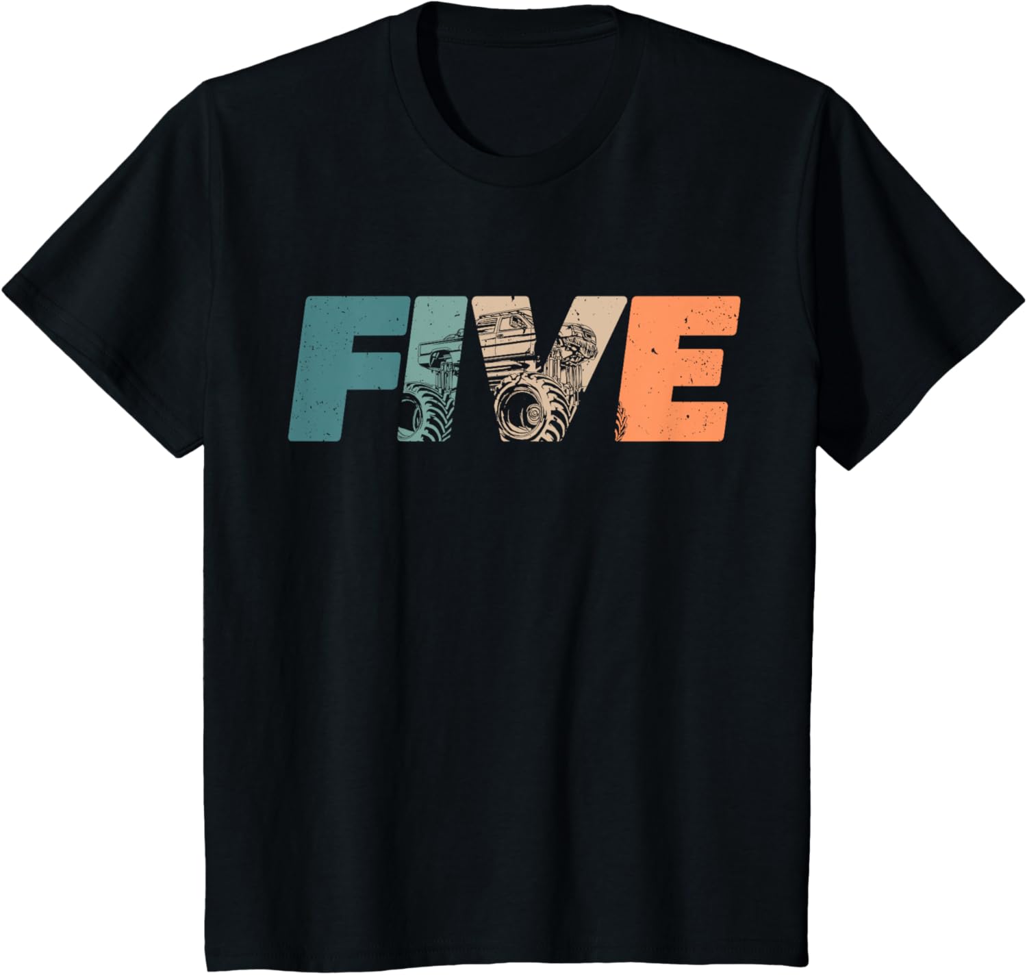 5 Year Old Shirt 5th Birthday Monster Truck Boys Girls Kid T-Shirt