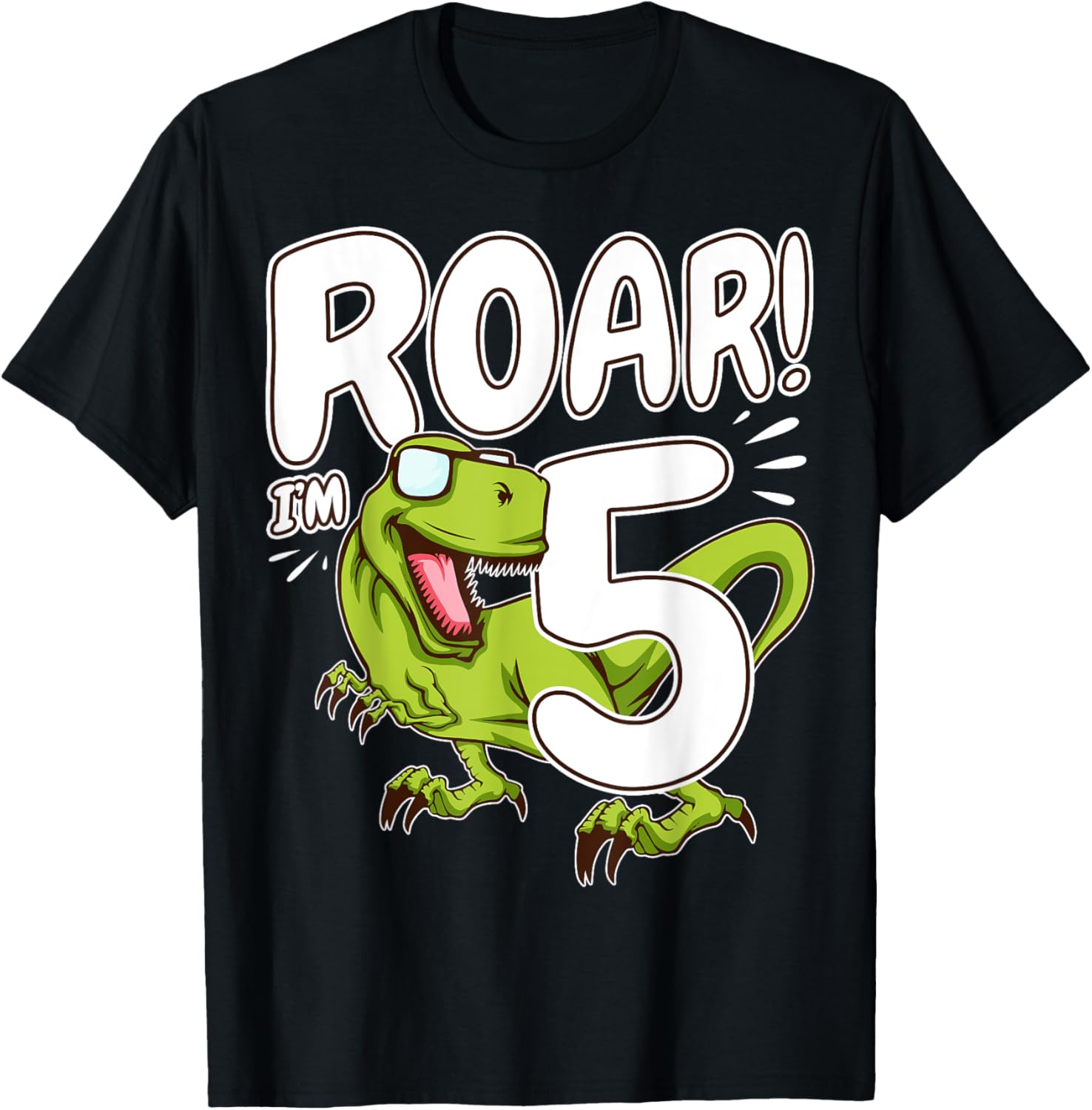 5th Birthday Party 5 Year Old Dinosaur T-Shirt