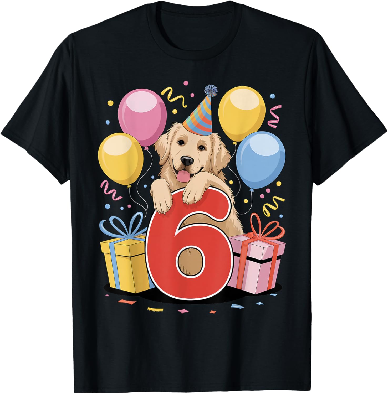 6th birthday boy girl 6 years old six Golden Retriever T-Shirt
