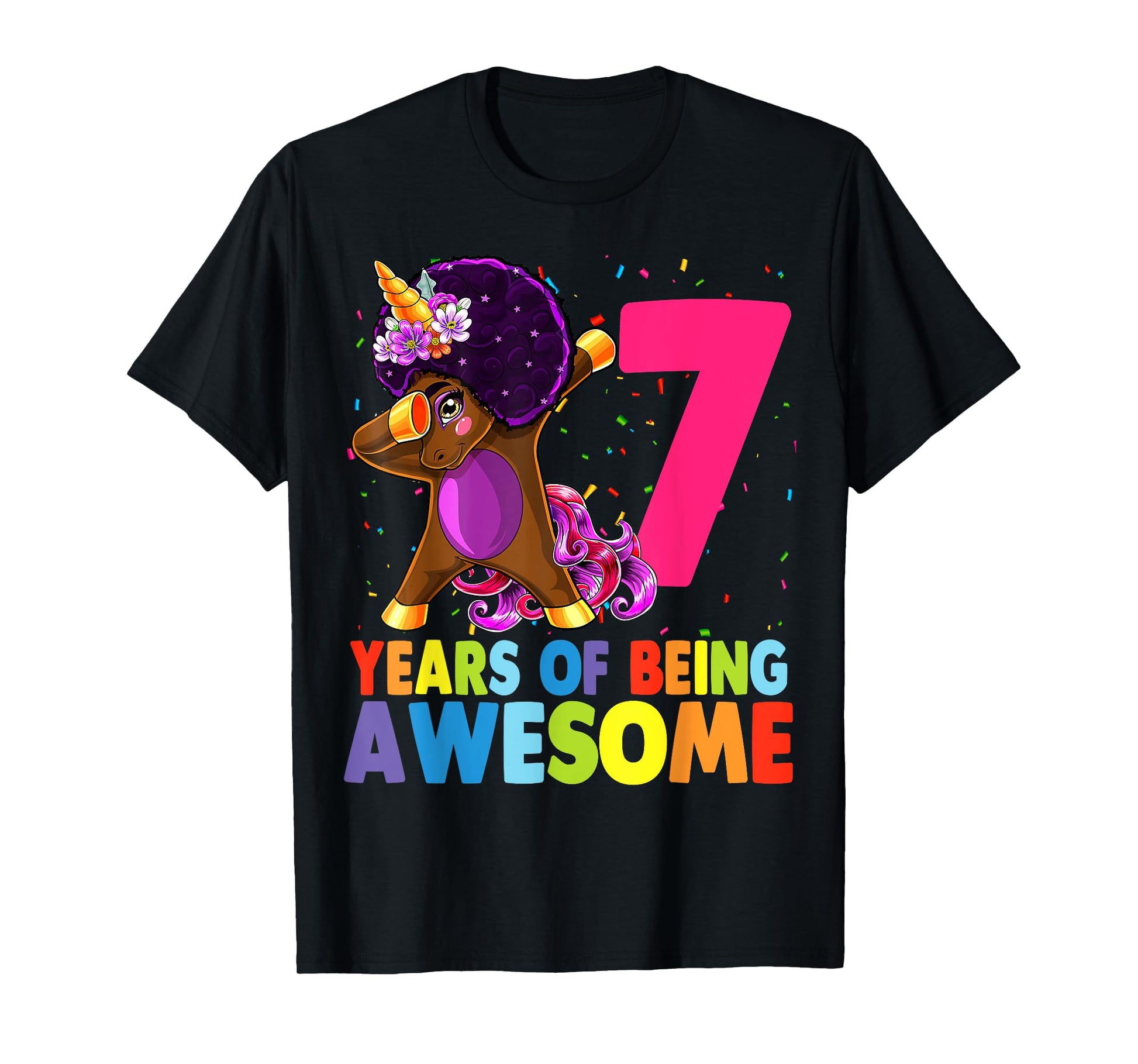 7th Birthday Dabbing Unicorn Afro Party Gift 7 Years Old T-Shirt