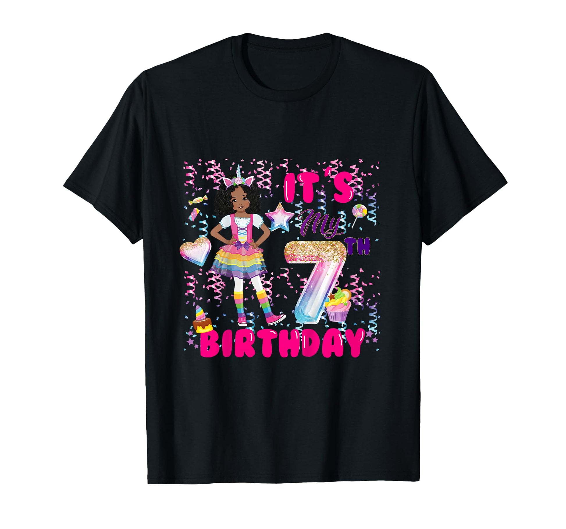 7th Birthday shirt Girls 7 yr African American 7th B-day T-Shirt