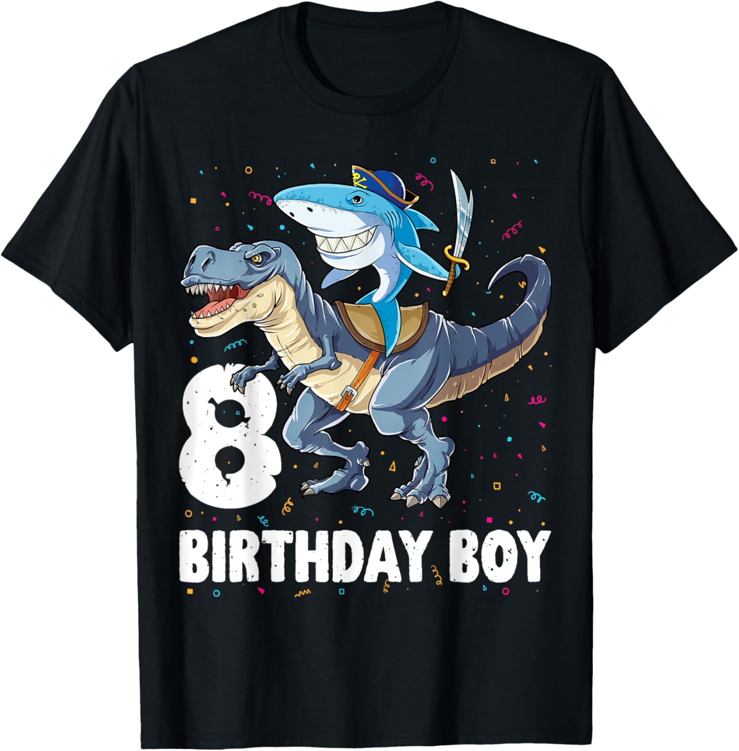 8 year old Shirt 8th Birthday Boy Shark Dinosaur Pirate Gift T-Shirt