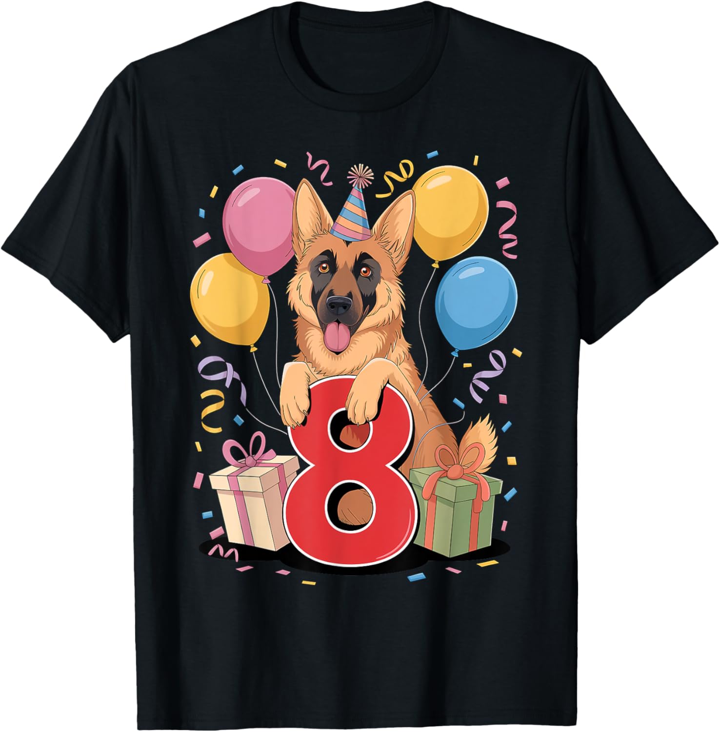 GSD dog 8th birthday boy girl 8 years eight German Shepherd T-Shirt