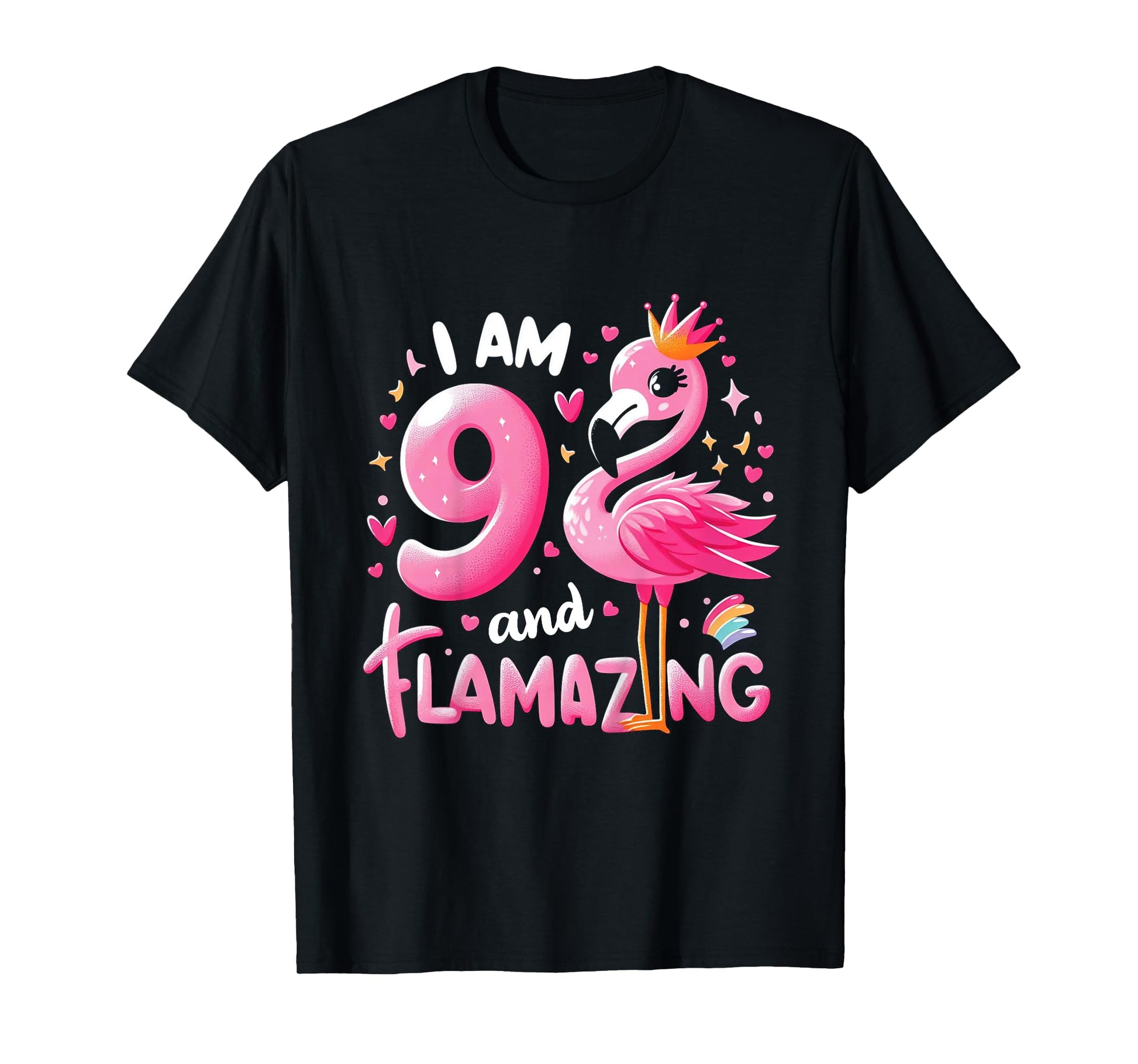9 And Flamazing Nine Years Old 9th Birthday Flamingo T-Shirt