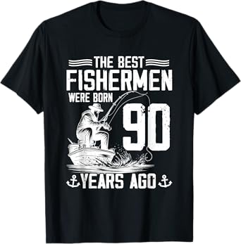 90 Year Old Gift Men Fisherman 90 Birthday Fishing 90th BDay T-Shirt