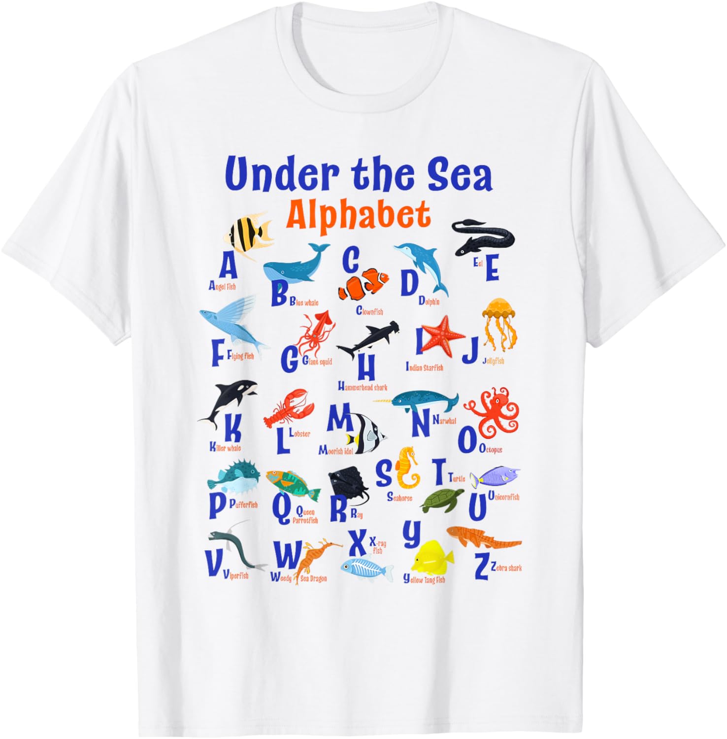 ABC Animals Under Water A-Z Types of Sea Animals Alphabet T-Shirt
