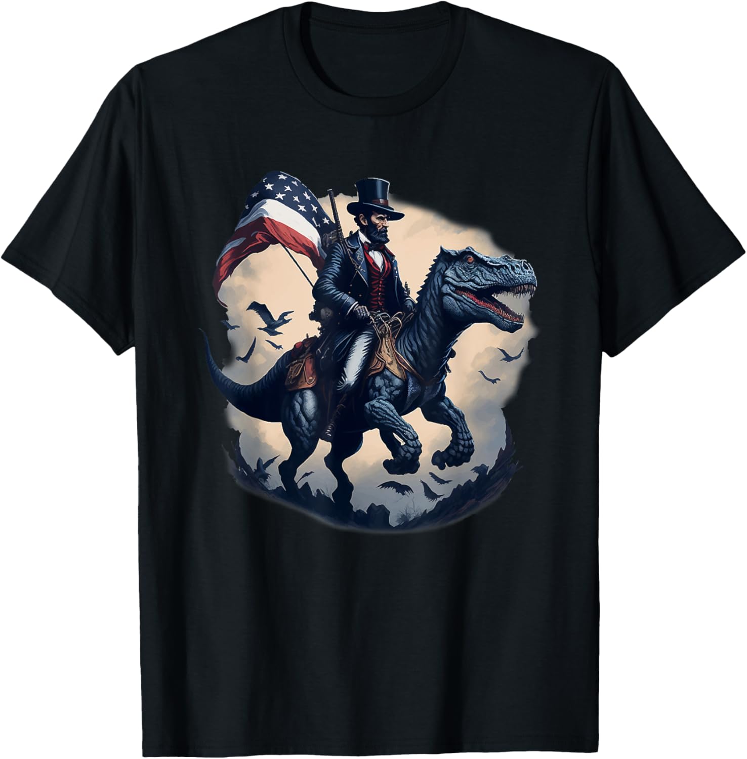 Abe Lincoln Riding Dinosaur American Patriotic Funny T-Shirt