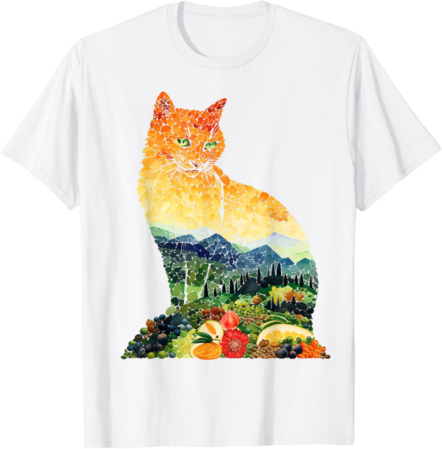 Cat Abstract Nature Art Animal Colorful Graphic Cat T-Shirt