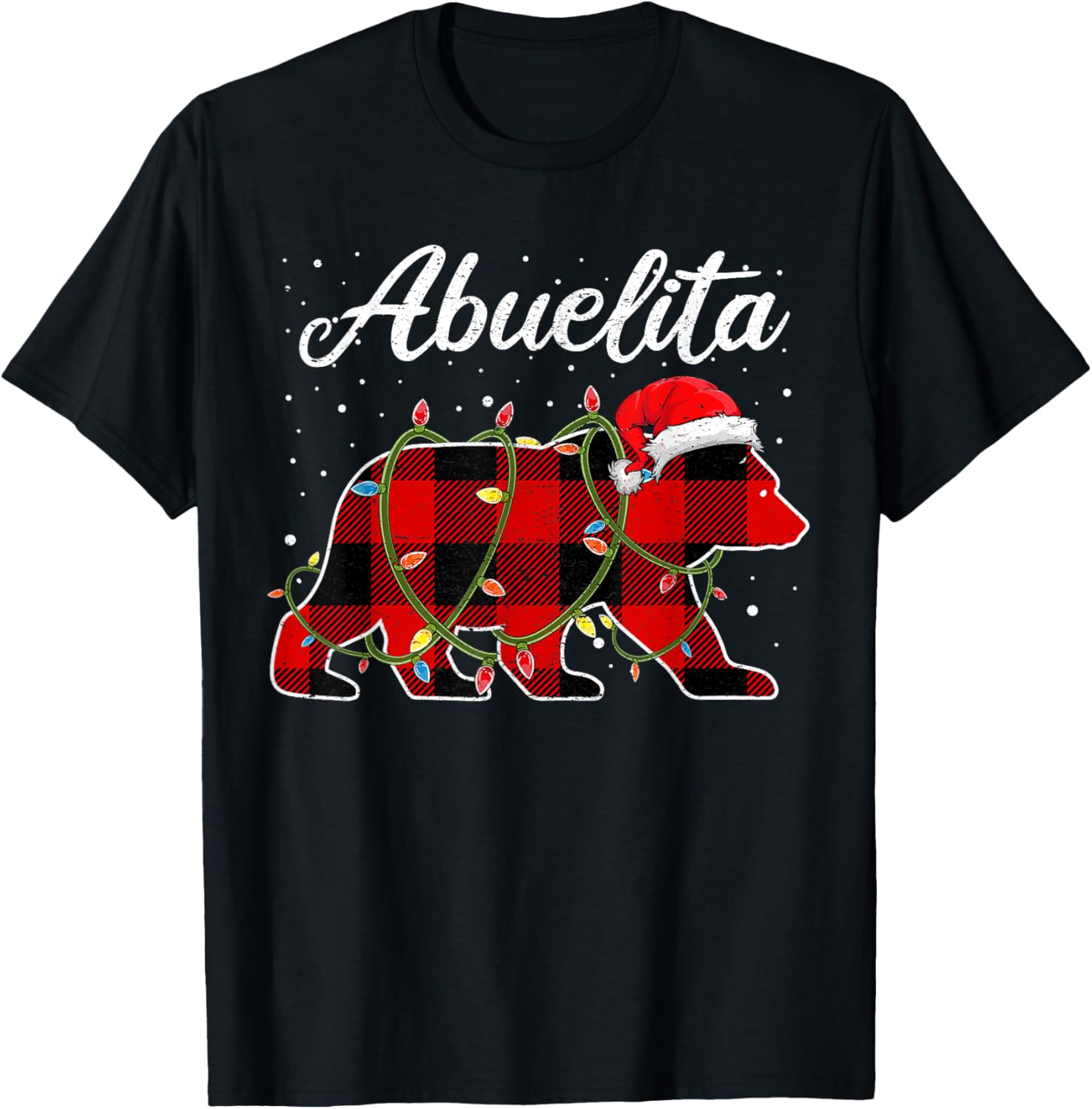Abuelita Bear Shirt, Red Buffalo Plaid Grandma Bear Pajama T-Shirt