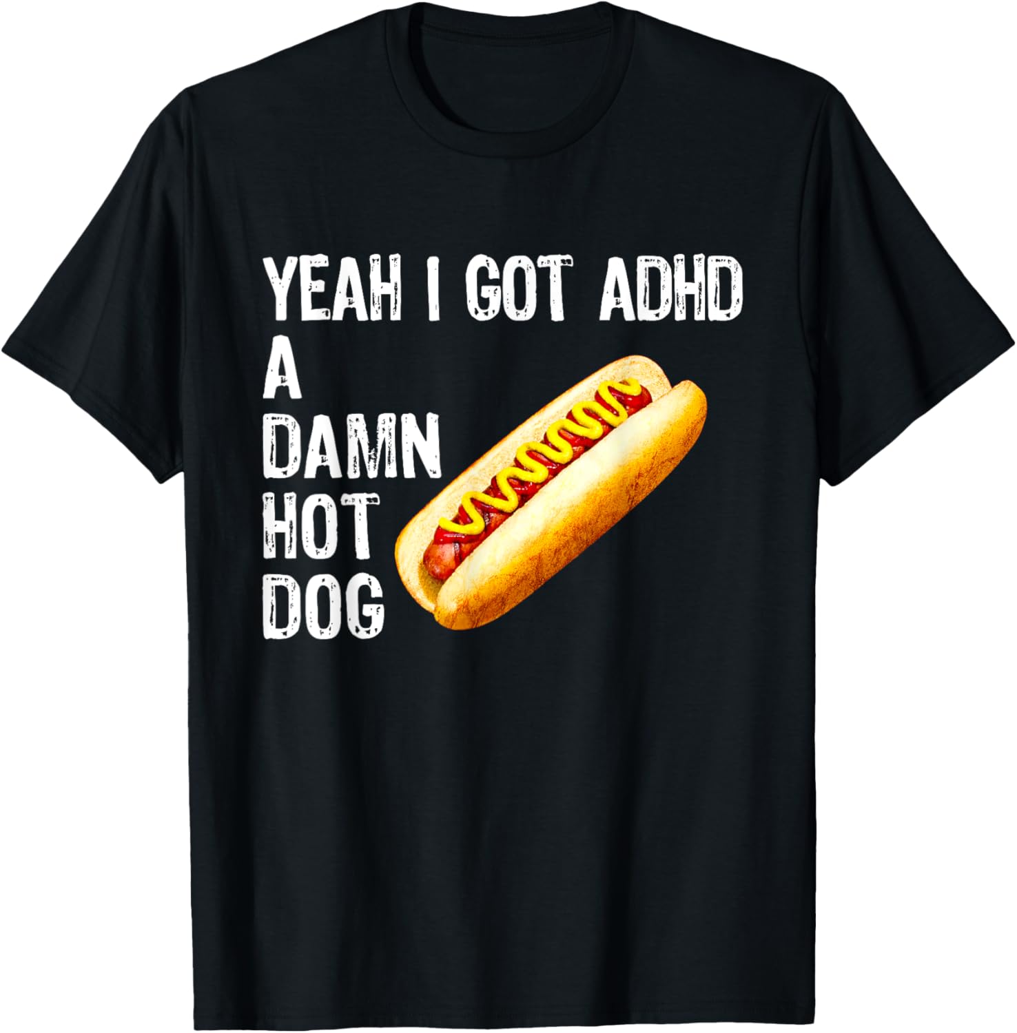 Yeah I Got ADHD A Damn Hot Dog Funny BBQ 4th of July T-Shirt