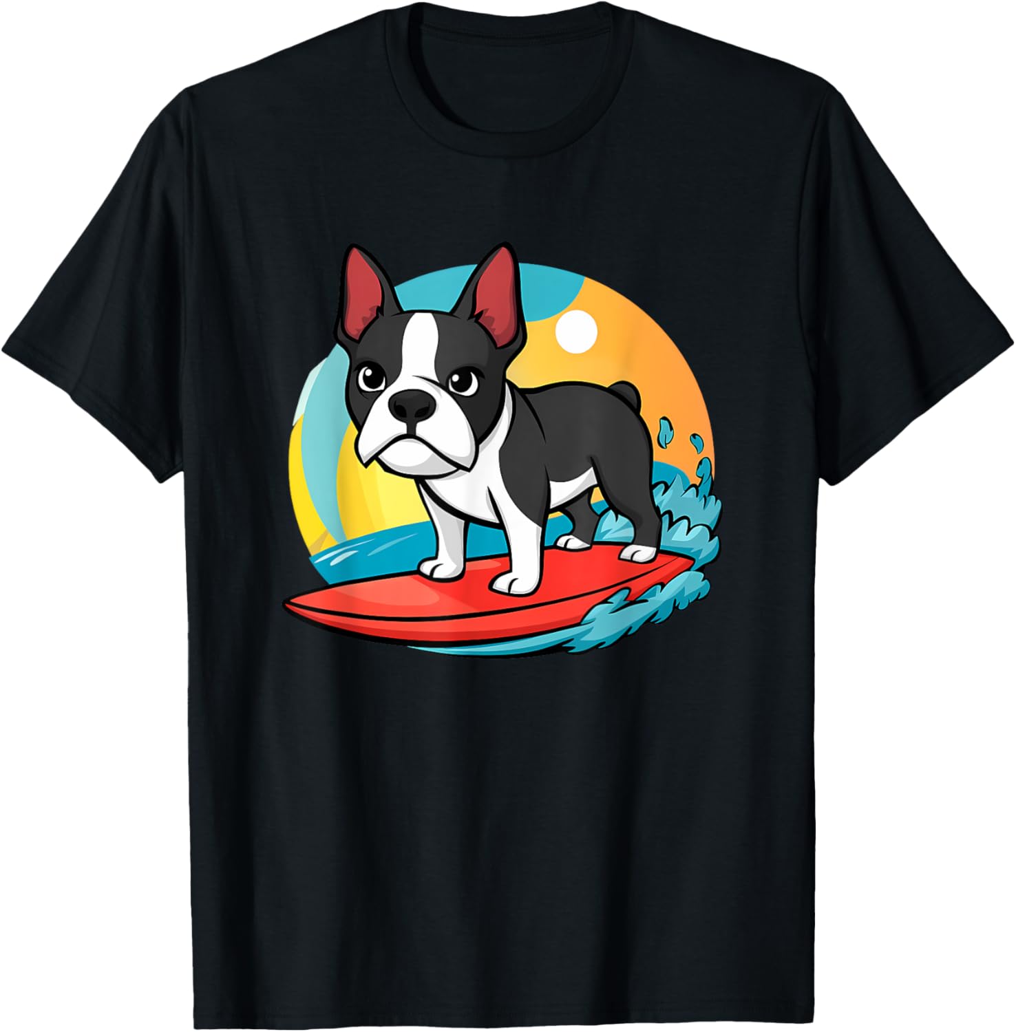 Adventurous Boston Terrier Dog Surfing Funny Surfers T-Shirt