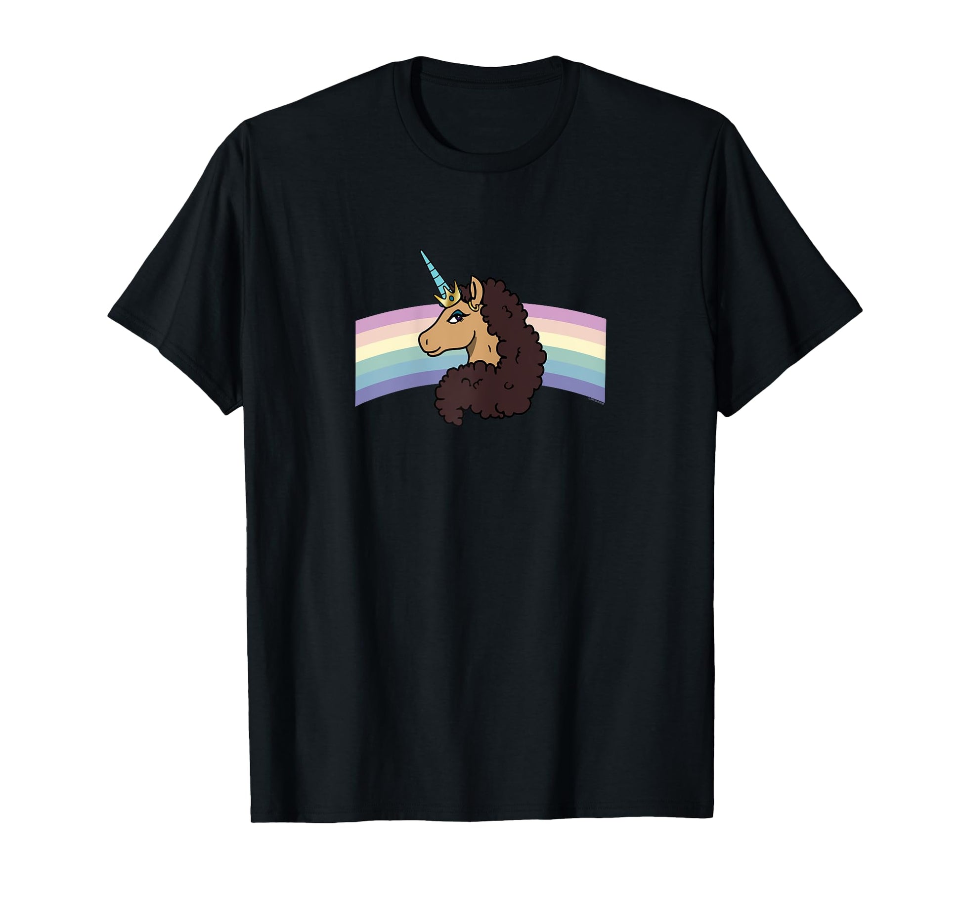 Afro Unicorn Divine Side View Rainbow Portrait T-Shirt