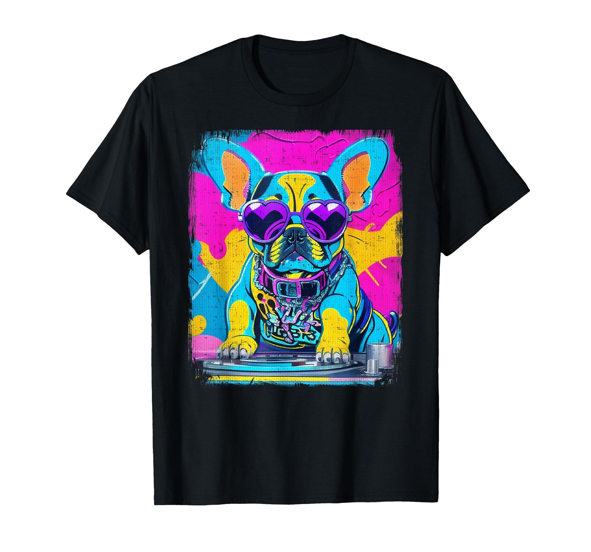 Airbrush Graffiti 90s DJ Analogue Turntable French Bulldog Men Women Girls Kids T-Shirt