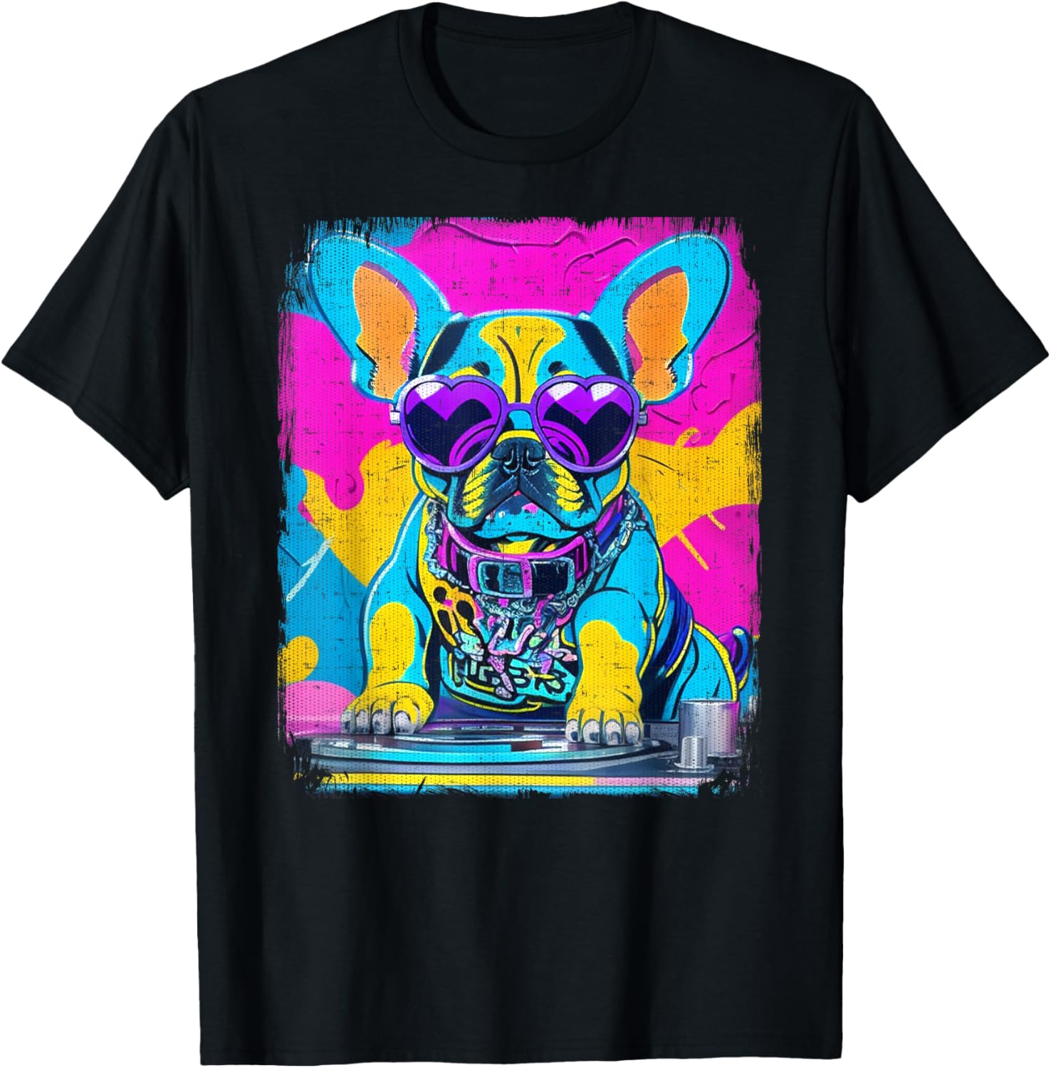 Airbrush Graffiti 90s DJ Analogue Turntable French Bulldog T-Shirt