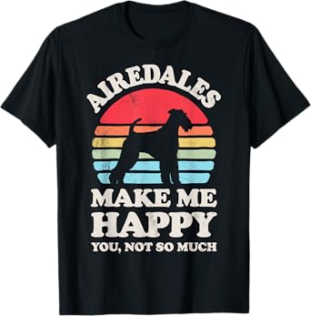 Airedales Make Me Happy Retro Airedale Terrier Dog Lover Men Women Girls Kids T-Shirt