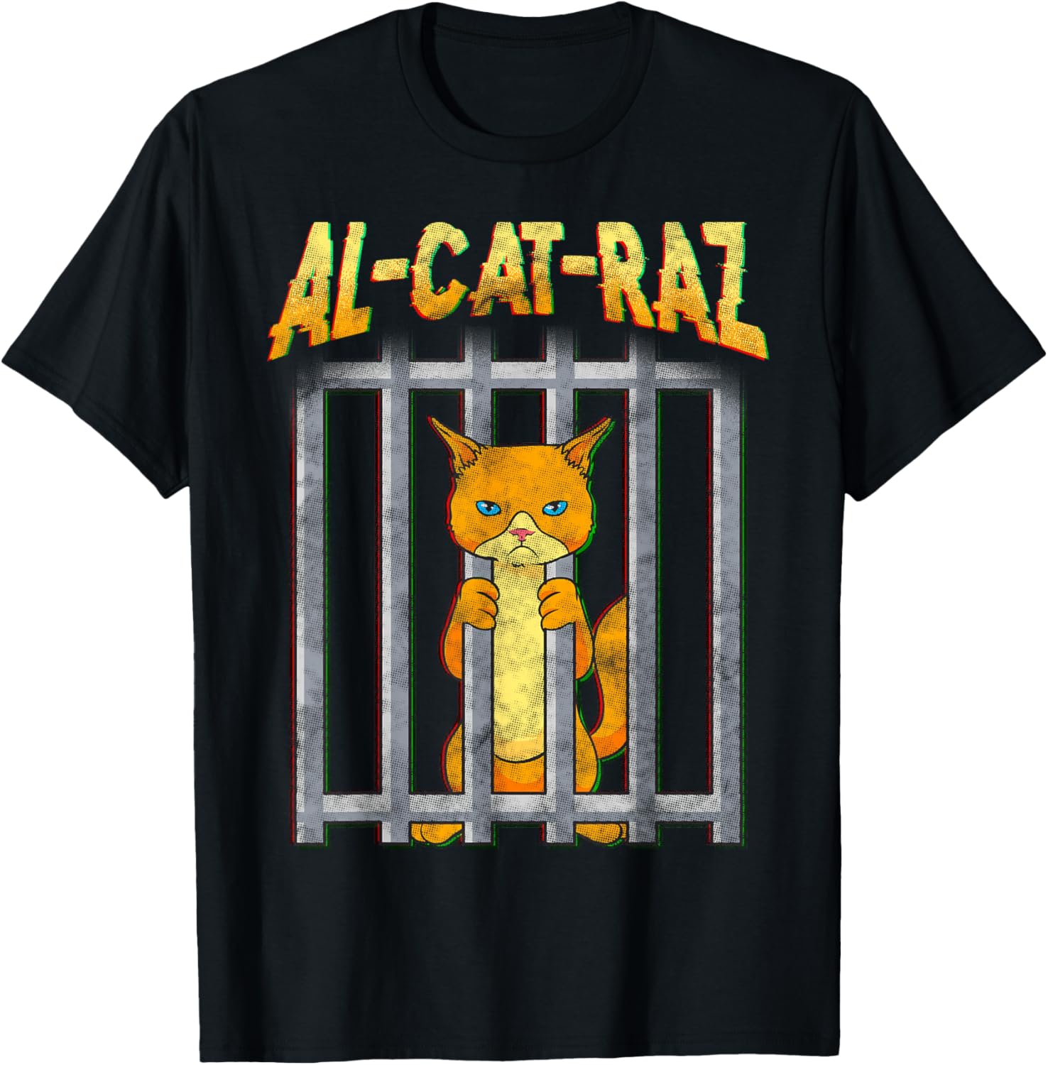 AL CAT RAZ Alcatraz Cat in Prison Behind Bars Funny T-Shirt