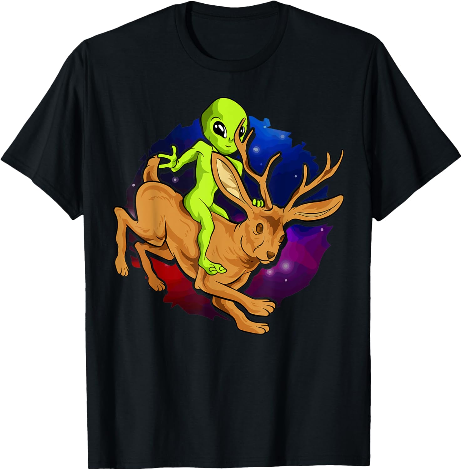 Alien Riding Jackalope Save Cryptid Hare Jackrabbit Camping T-Shirt
