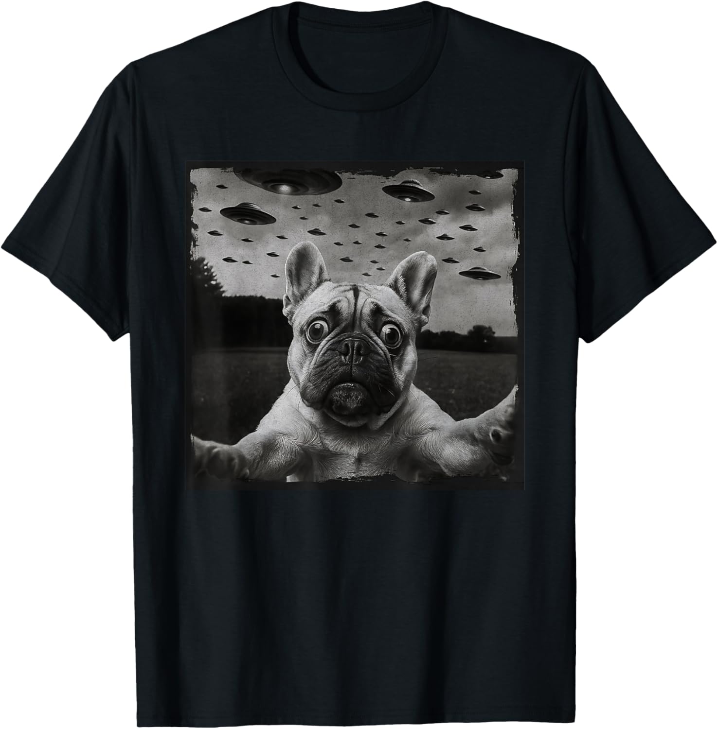 Alien UFO Pug Selfie, Funny Puggo Dog UFOs Space Moment T-Shirt