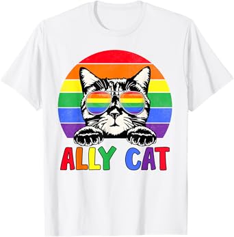 Ally Cat Rainbow Gay Pride Cute LGBT Animal Pet Lover T-Shirt