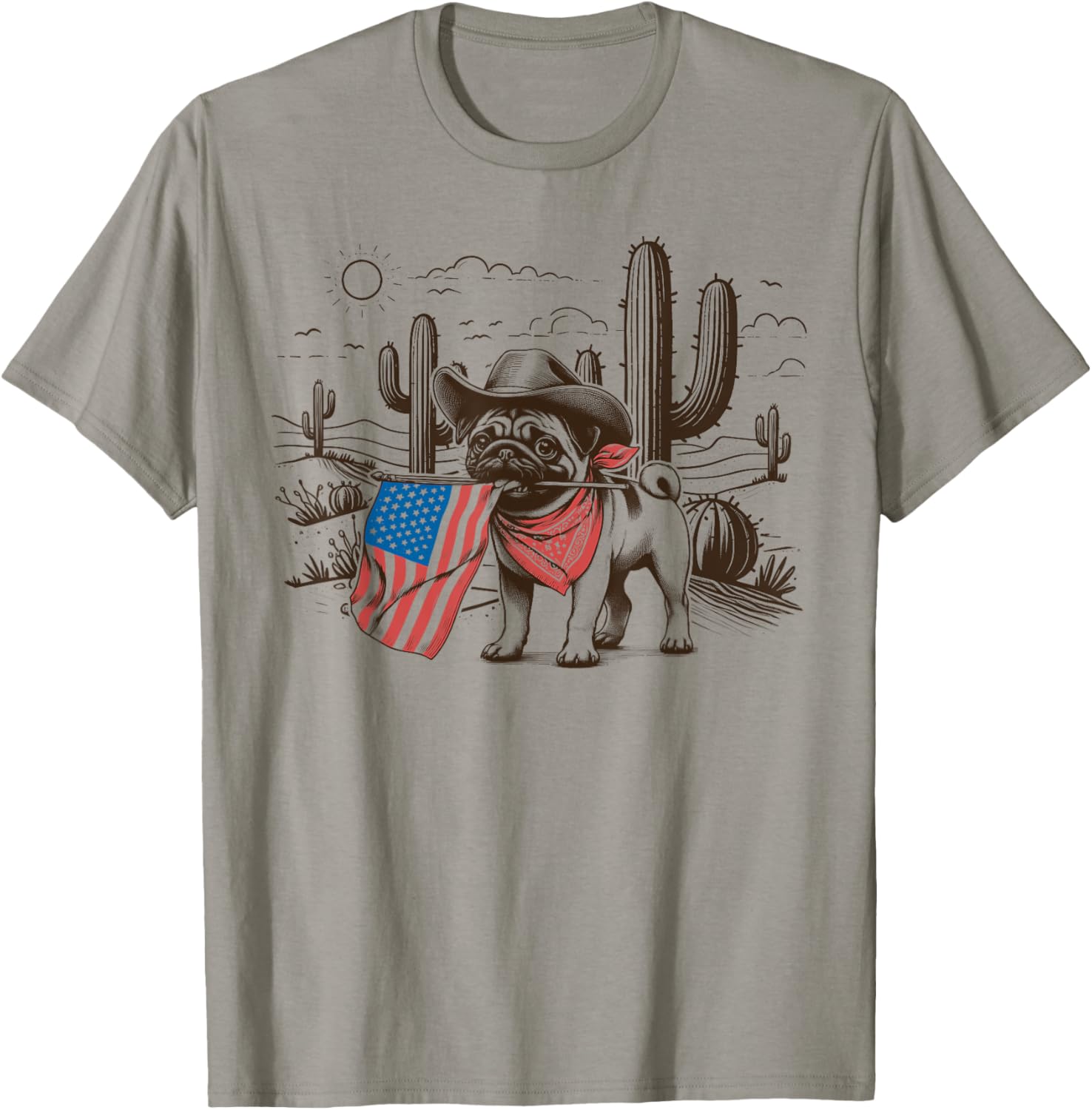 America Western Cowboy Dog Pug 4th of July T-shirt