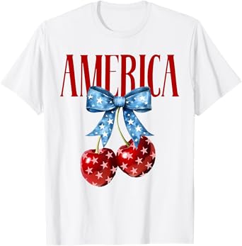 American Coquette Cherry Bow Patriotic USA Flag 4th Of July T-Shirt