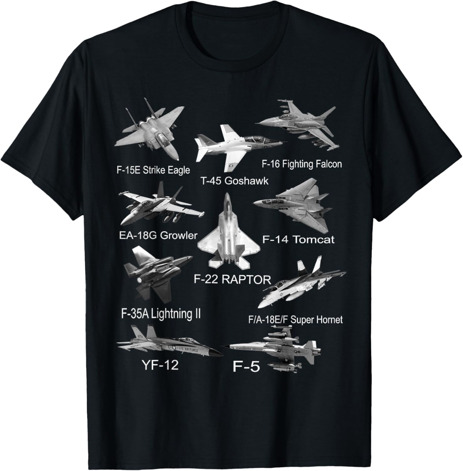 American Fighters Jets F22 Raptor F14 Tomcat Plane Spotting T-Shirt