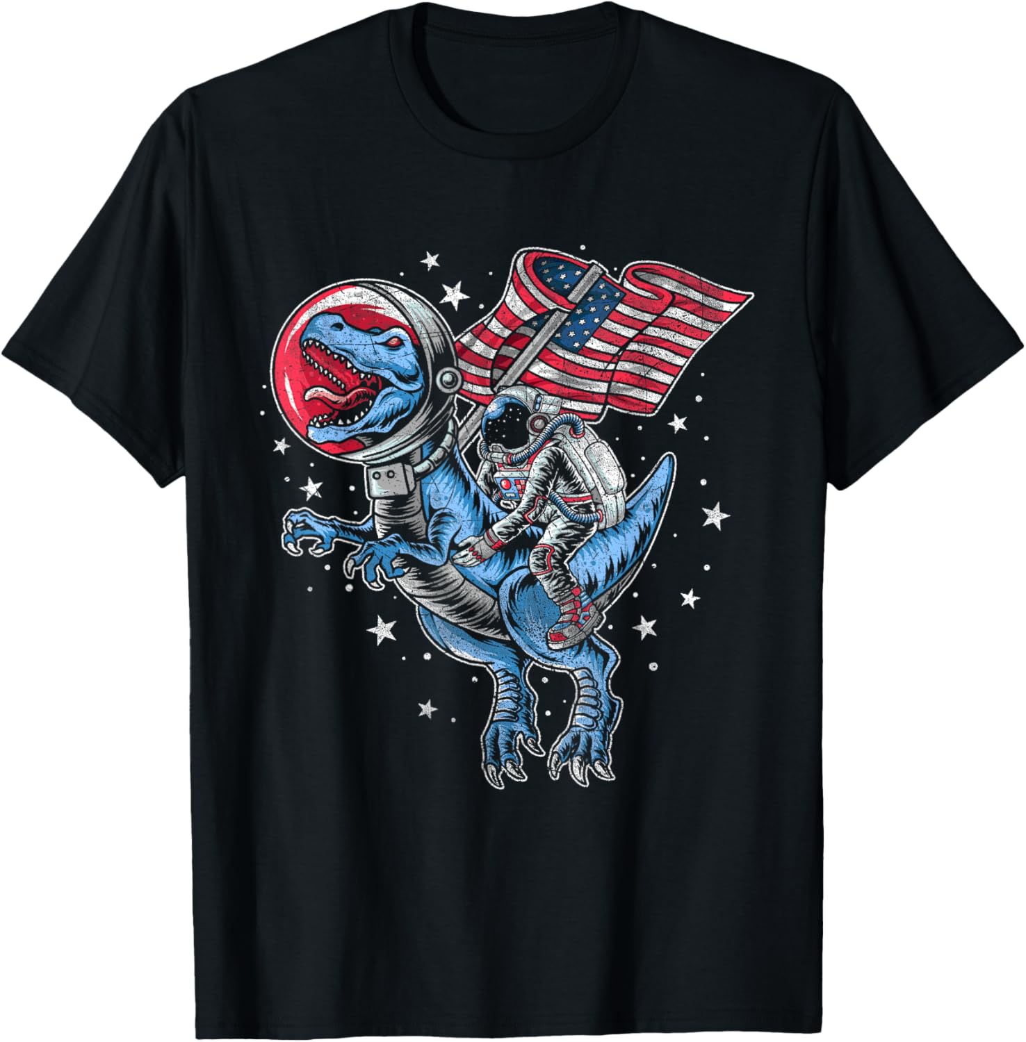 American Flag Astronaut Dinosaur Red White Blue 4th of July Women Kids Men T-Shirt