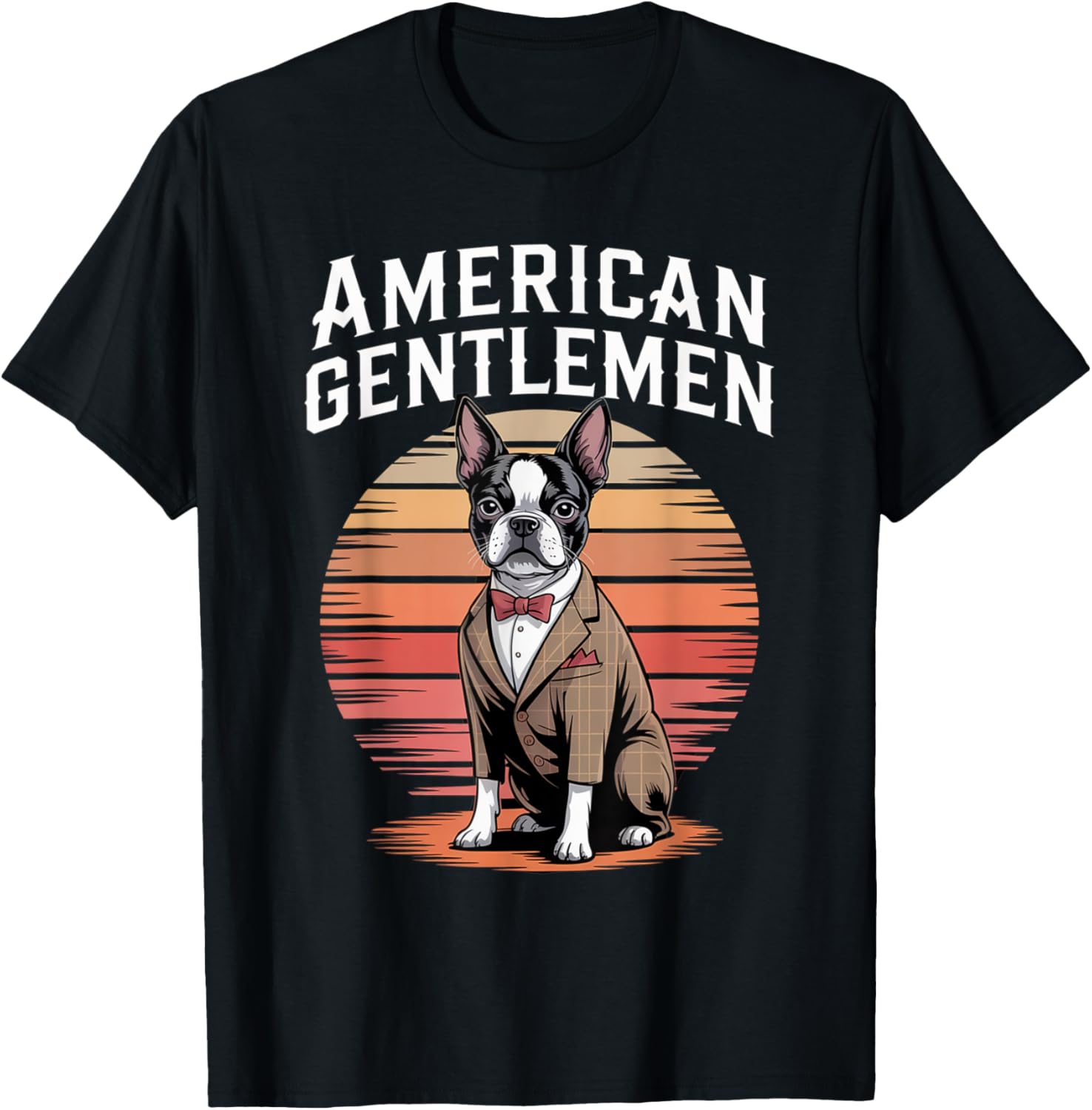 American Gentleman Boston Terrier Sunset Vintage Suit Dog T-Shirt