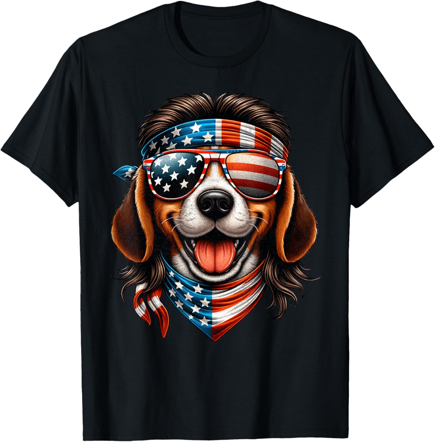 Beagle American Flag Patriotic Mullet Beagle Dog 4th Of July T-Shirt