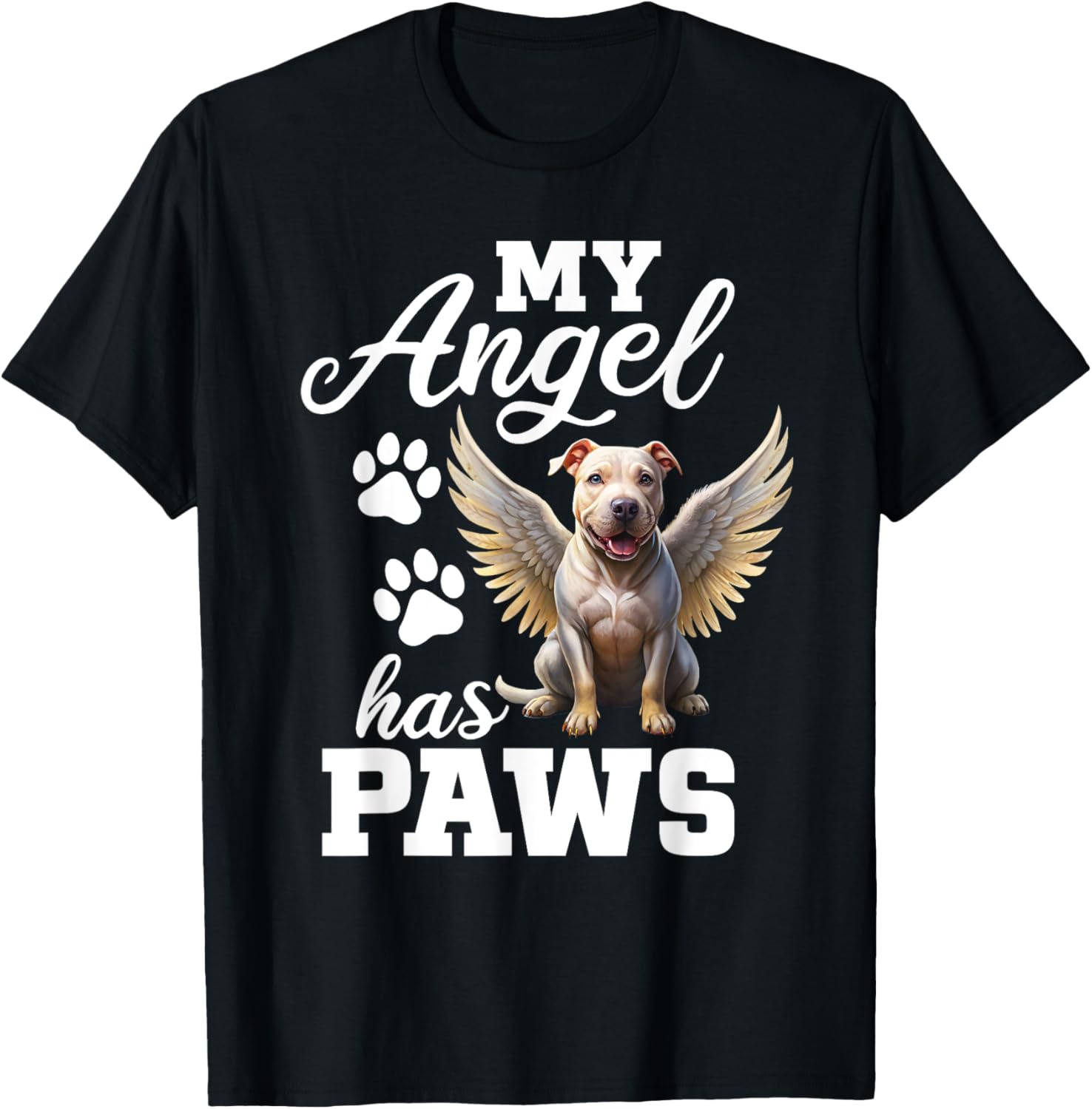 My Angel Has Paws Pitbull Memorial Dog Angel Wings T-Shirt