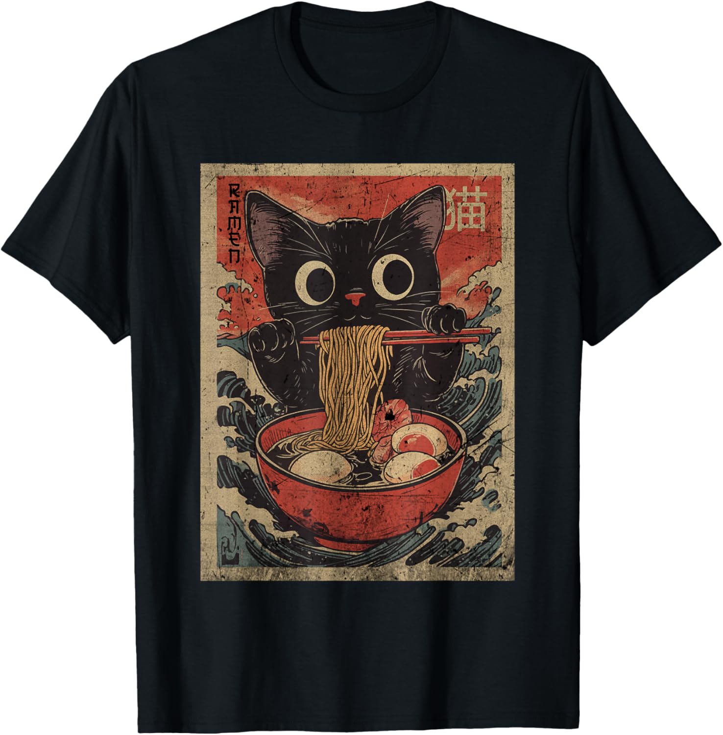 Anime Cat Ramen Japanese Funny Graphic Kawaii Cat Anime T-Shirt