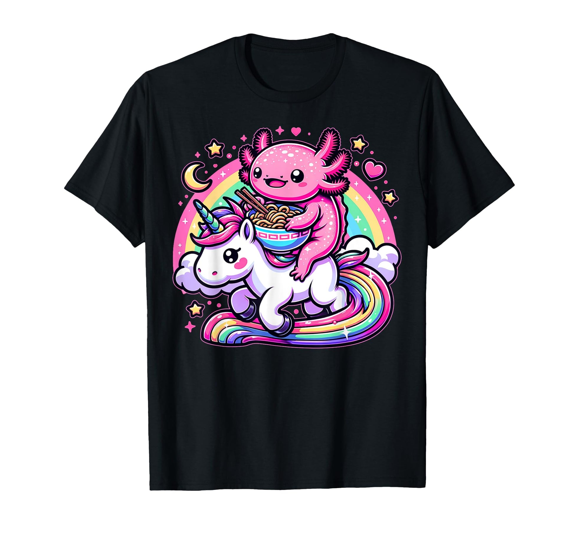 Anime Kawaii Axolotl Eating Ramen Noodles Kids Teen Girl Boy T-Shirt