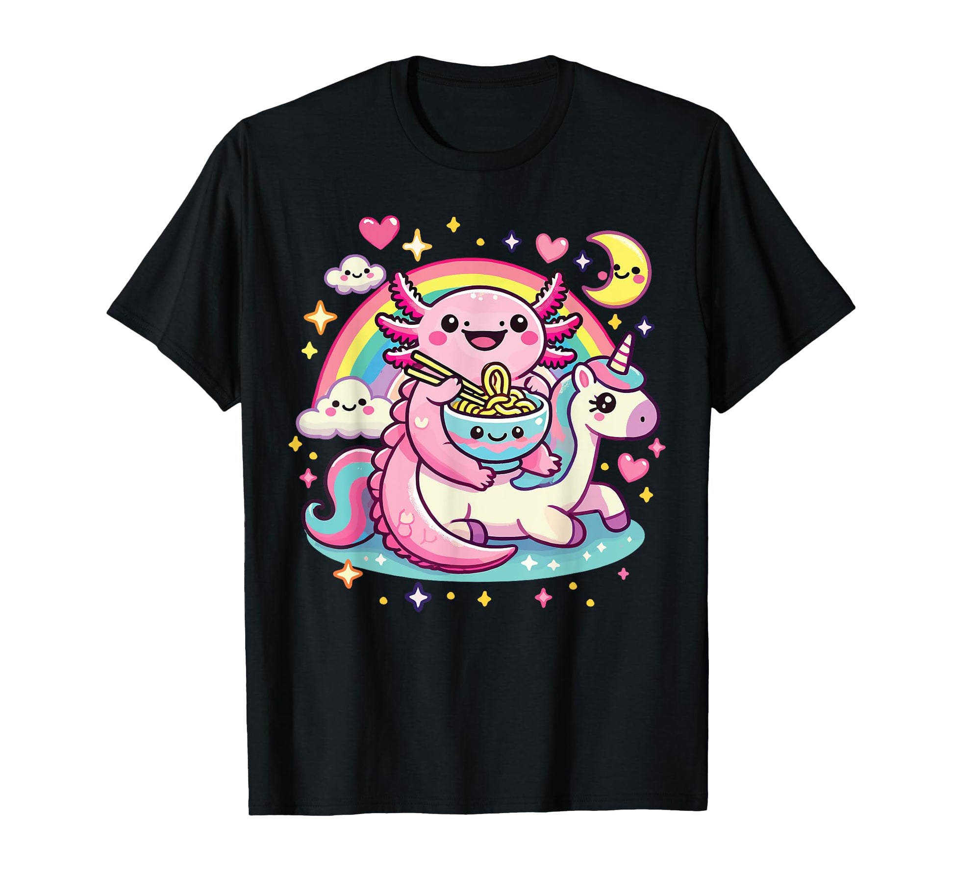 Anime Kawaii Axolotl Eating Ramen Noodles Rainbow Kids Girl T-Shirt