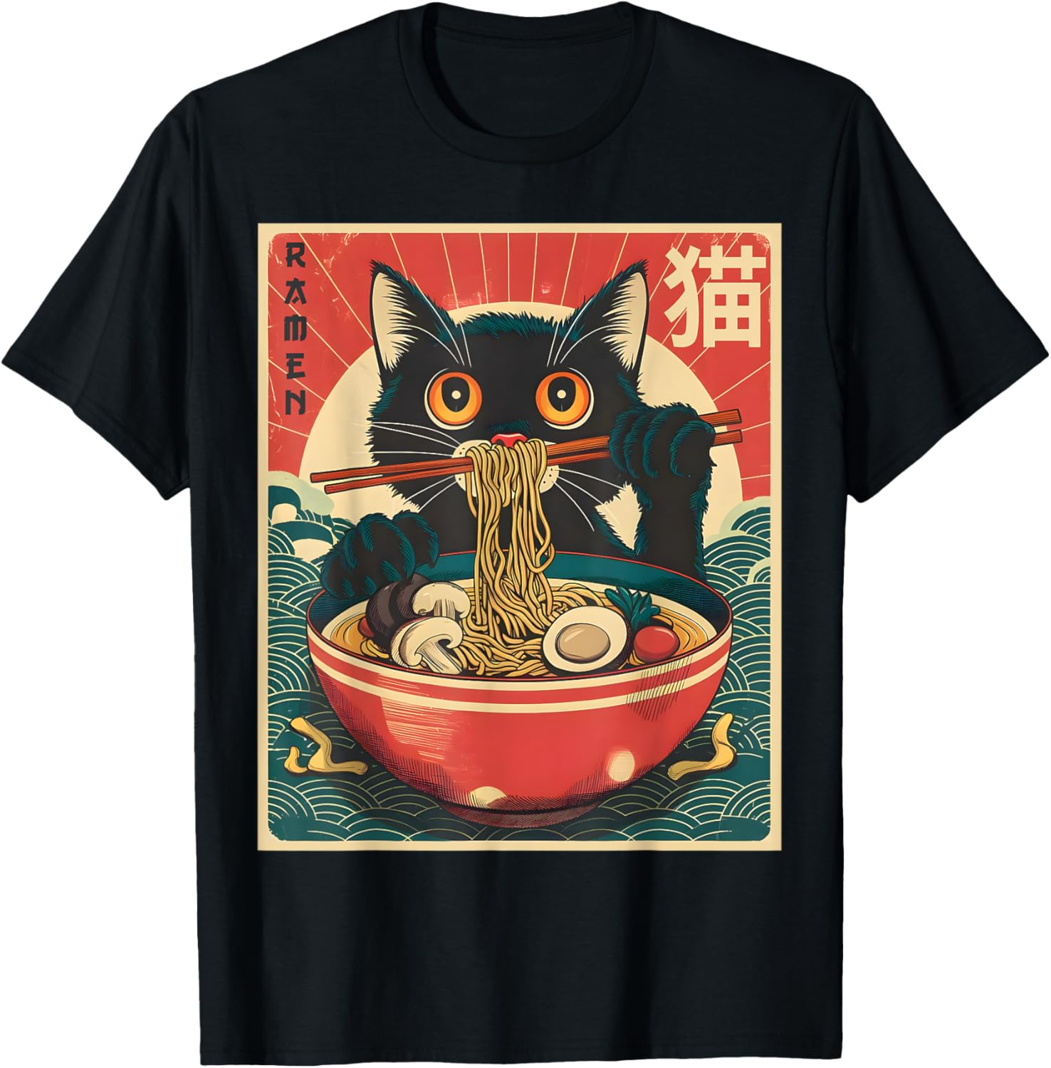 Unisex-Adults Unisex-Kids Kawaii Cat Anime Gifts Cat Ramen Graphic Tee Japanese Funny T-Shirt