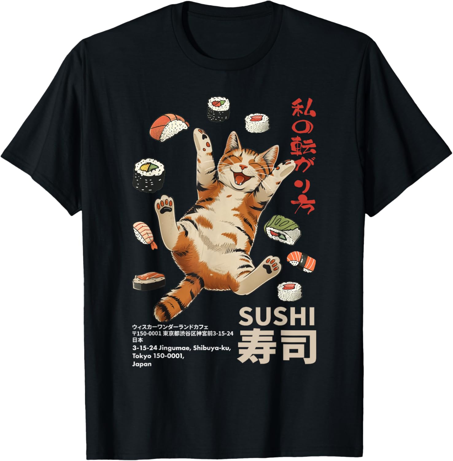 Anime-Style Sushi Cat: Harajuku Tokyo Japan Cat Cafe T-Shirt