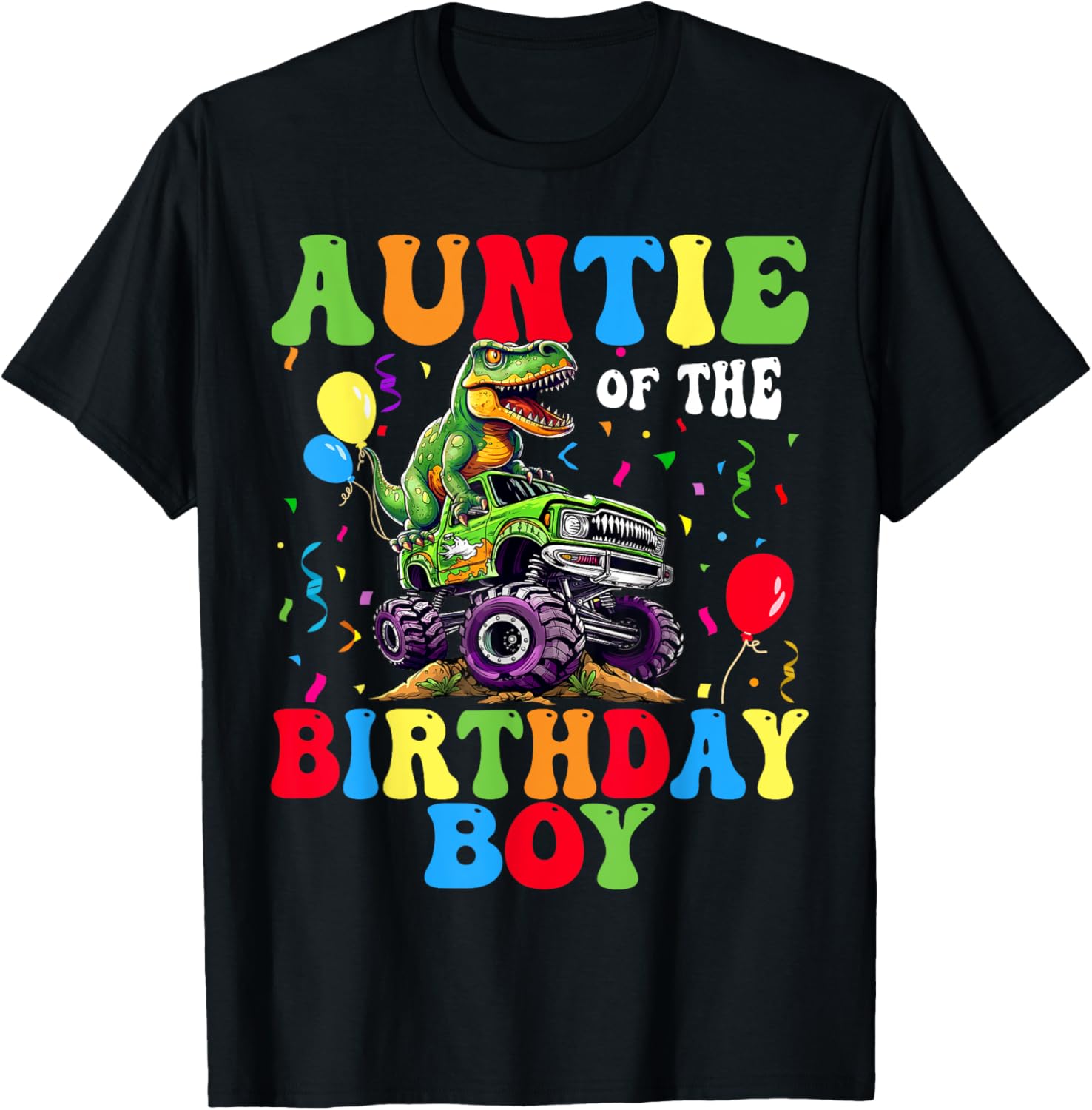 Auntie Of The Birthday Boy Dinosaur Monster Truck T-Shirt