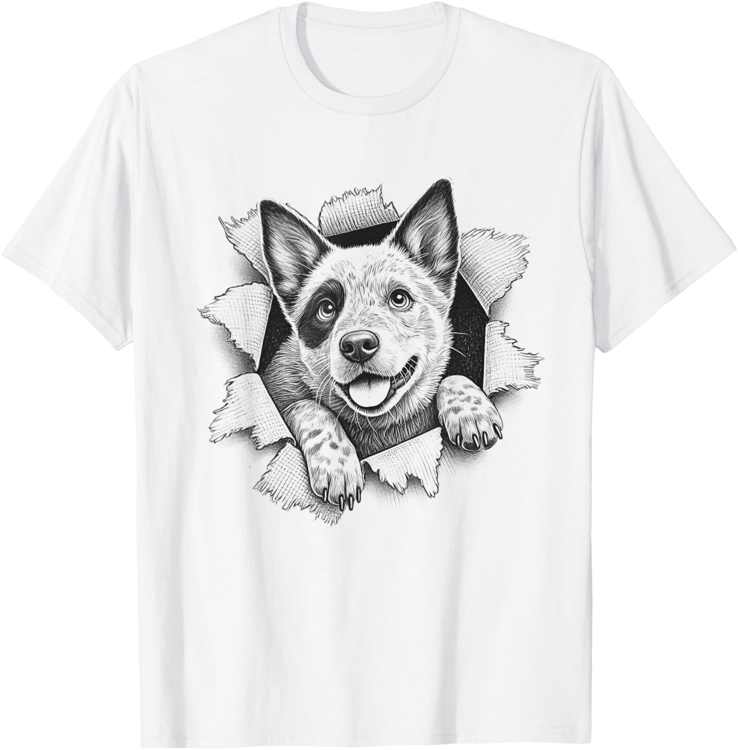 Funny Australian Cattle Dog Blue Heeler Peeking Dog T-Shirt